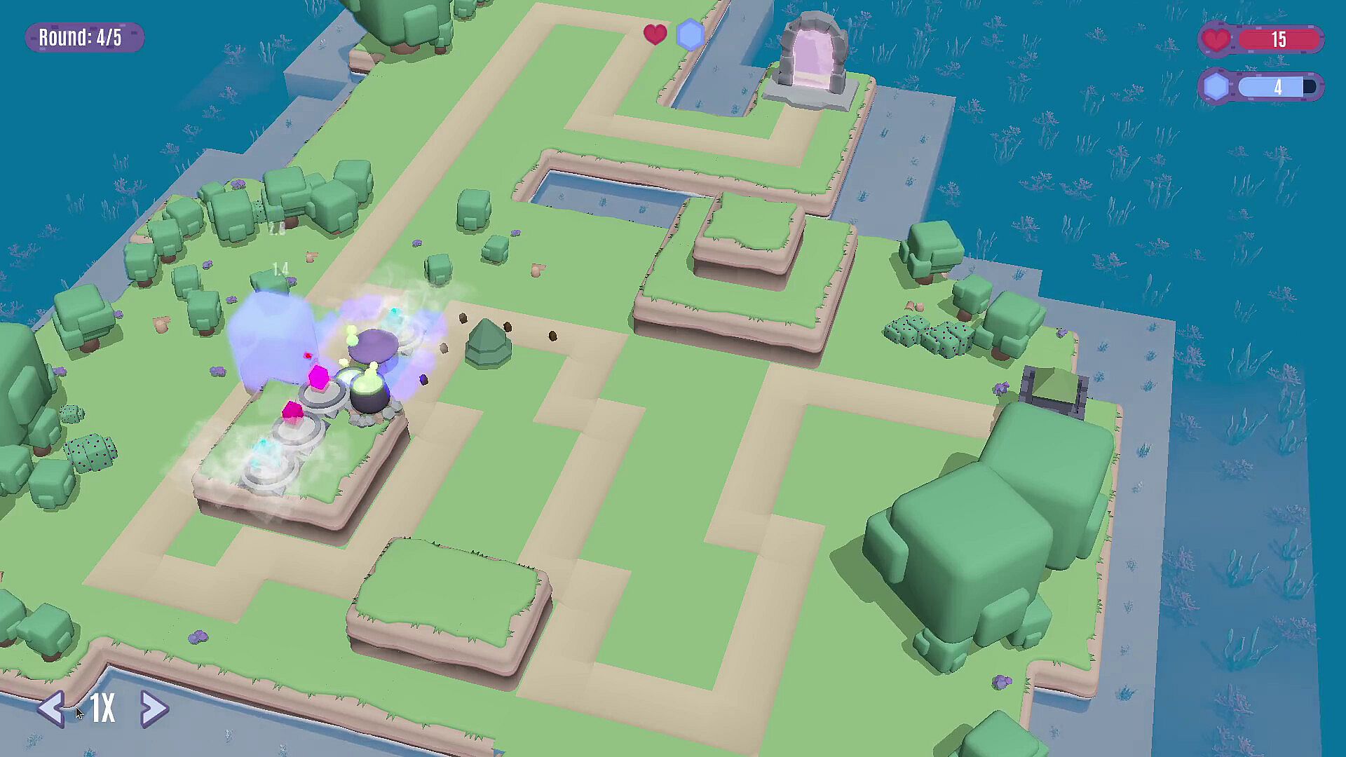 Draw a hand of cards. Use energy you can places your cards to build towers.