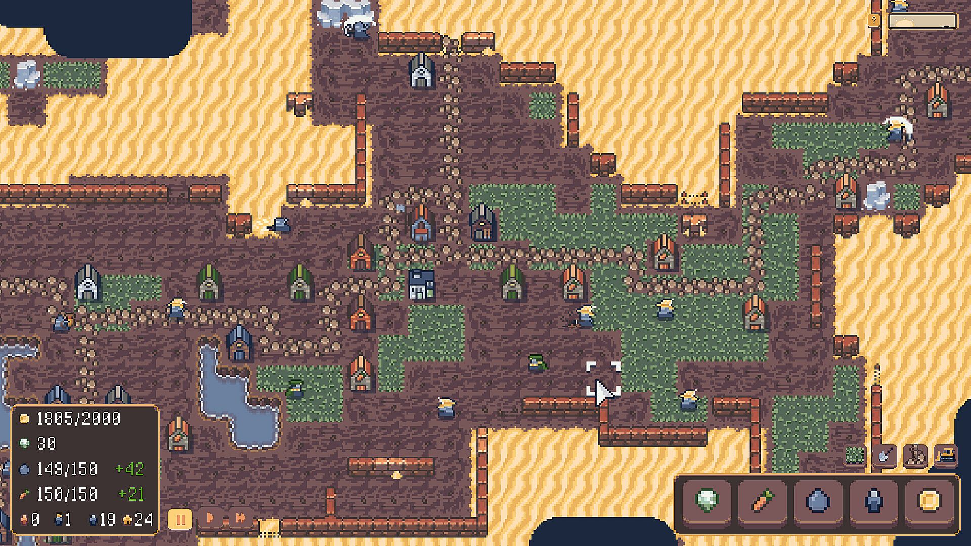 The desert’s lack of food and water won’t be the only challenge you’ll face. Relentless sandstorms will hit your settlement. Be careful where you build your city and erect walls to protect your people from the forever-moving sands of the desert.