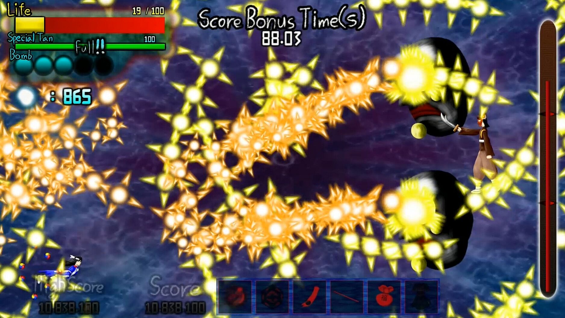 Use Bomb, skip boss dialogue: X