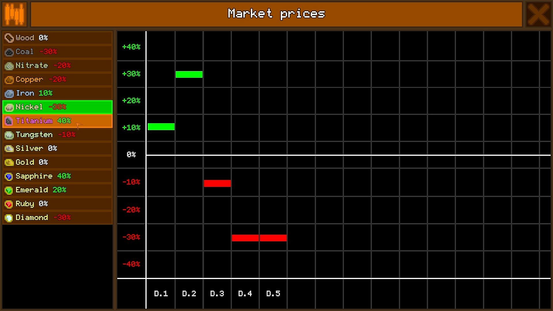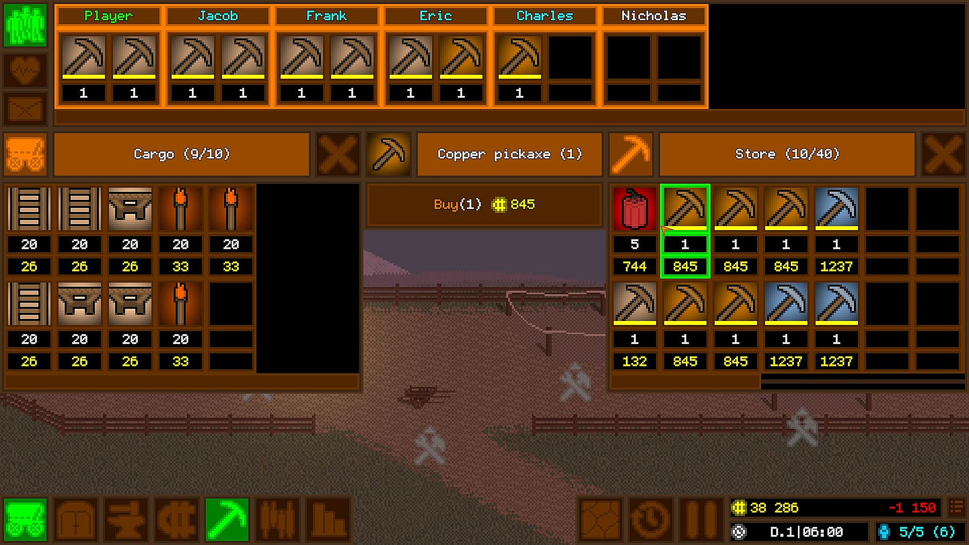 In the process of extracting resources, various ridiculous situations arise since the behavior of the miners is unpredictable and sometimes stupid. They can start smoking next to nitrate blocks or start digging a block that has other miners on it. At the same time, blocks under which there is no support or other blocks can collapse with some chance, breaking all buildings under them. The player will have to respond in time to a constantly changing situation.Trade in the market