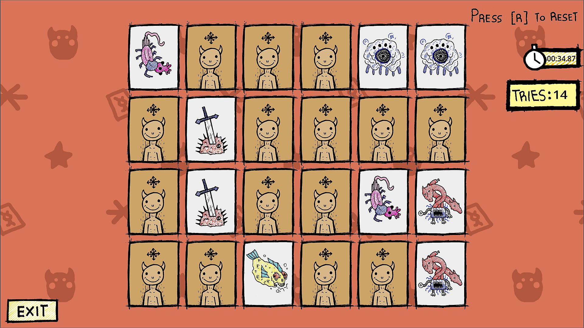 This game is just what it seems: a simple card matching game that I made using my drawings. 80% of what you see in game is hand drawn by me, the cards, the words and even some UI/UX, (20% are just some of the UI I made digitally for the store). This game was born as an experiment, to see if I could not only make a video game, but also make it while only using art sprites directly scanned from paper.