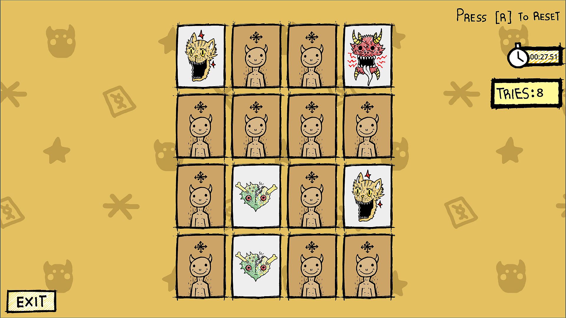 Last but not least thing to mention is that each mode has a timer and an attempt counter that will allow you to realize your current skill. Every game you win will save your best time and tries. Try to get the best score possible out of all game modes!