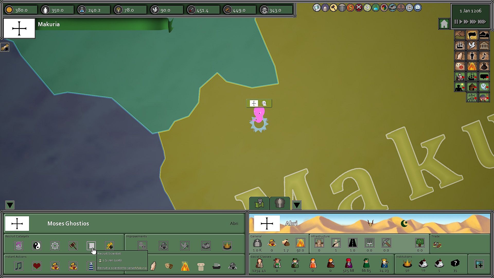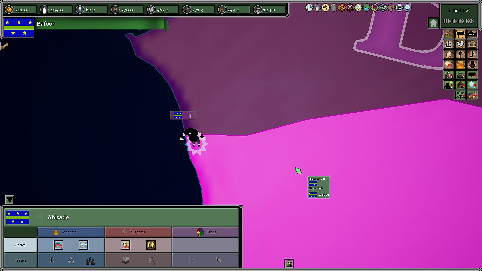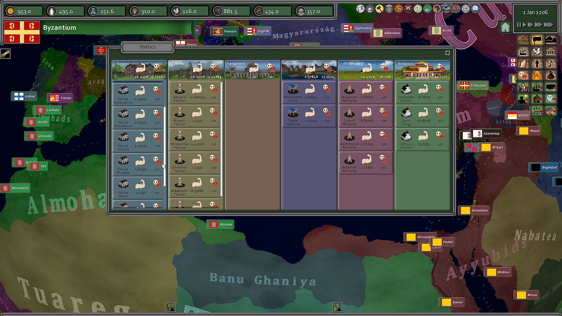 Play one of a thousand countries on a spherical globe from 1206 to 1492.