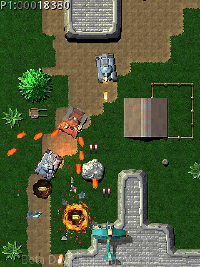 Players control fighterplanes and combat enemy ground forces. Fighters are equipped with front-facing autoguns which can be upgraded though collecting powerups.