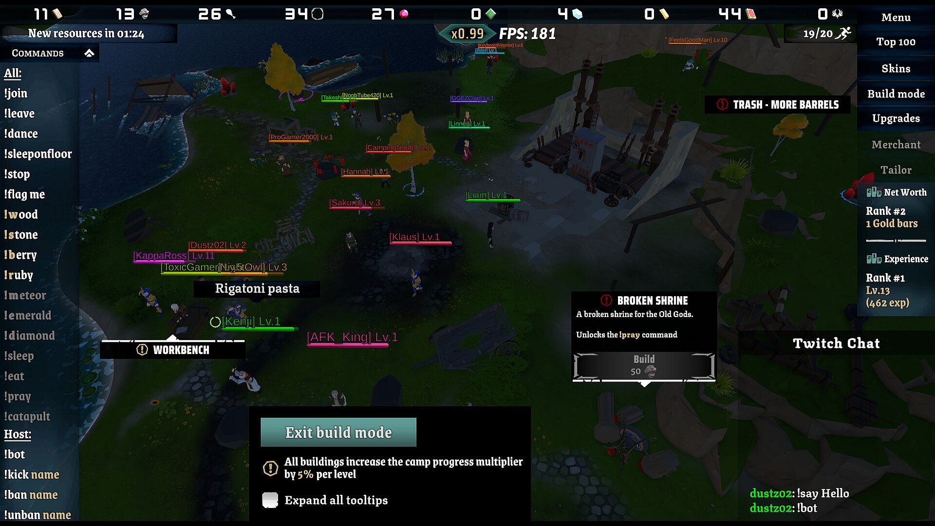 • Solo play with bots or multiplayer sessions where your Twitch viewers join via chat commands