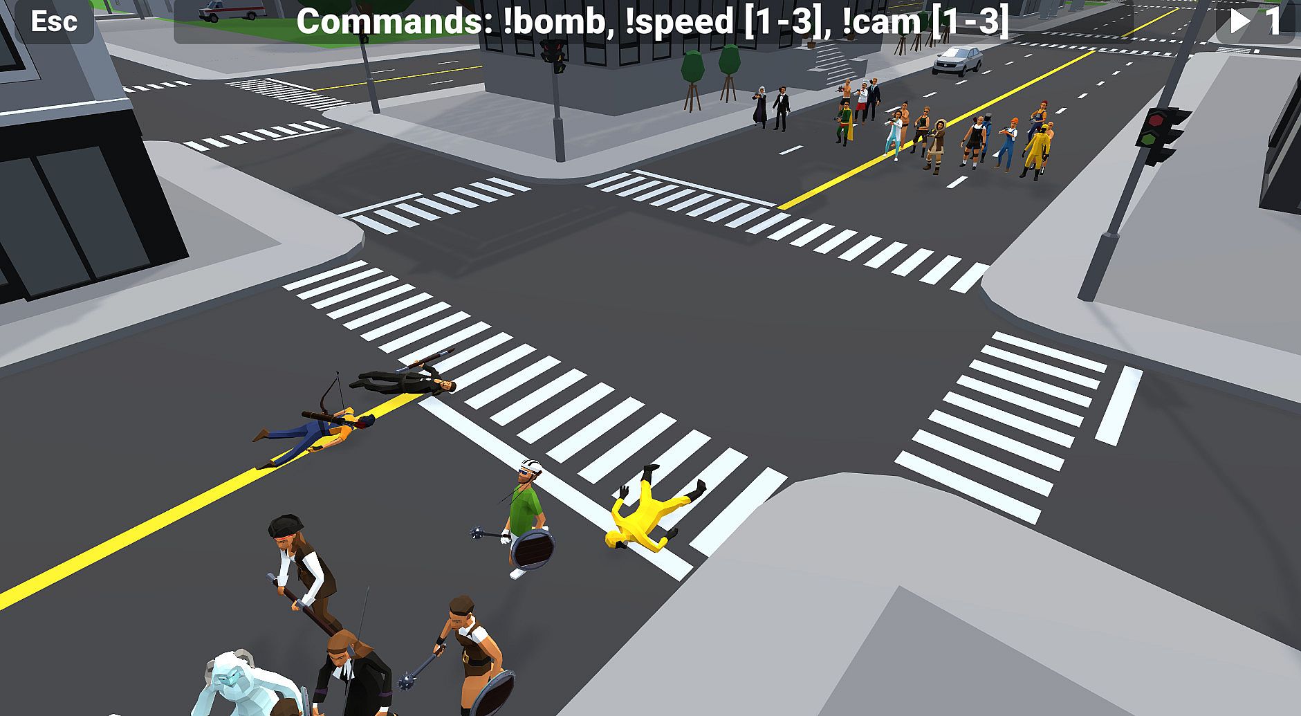 Viewers join this game by commands in twitch comments to spawn characters.