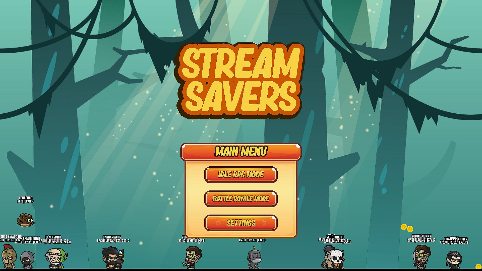 Idle RPG - It's like a piranha tank full of tamagotchi-style heroes. Hatch a starting egg to start your journey. Heroes automatically attack enemies, gain experience, level up, and collect coins. Heroes never die. Twitch viewers can interact by spawning effects, enemies, bosses, and coins though chat commands and donations. Coins can be used to buy additional eggs.