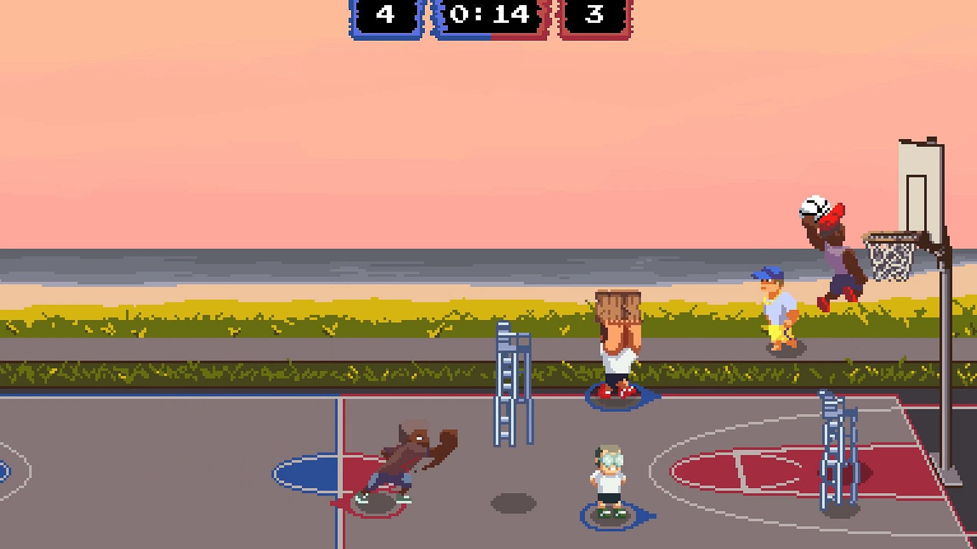 - Fast-paced beat’em’up-basketball hybrid gameplay
