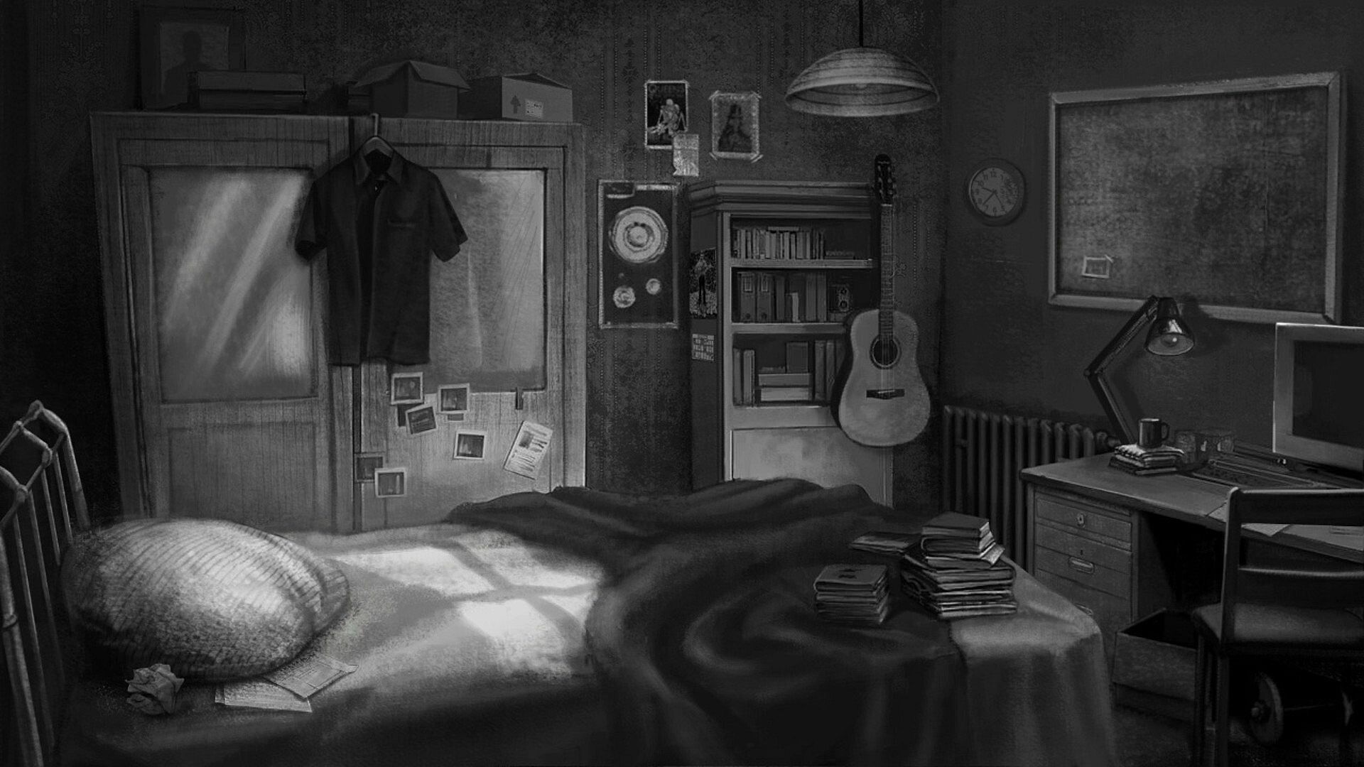 You are Artem, a student whose dreams of becoming a filmmaker and starting a new life died along with your father and a personal tragedy, leaving you stranded in this backwater town. Your world has long been devoid of color due to achromatopsia, and after the attack on the banks of the Styx River, your memory of that night was erased. You are the only surviving witness. To uncover the truth, you will have to investigate a series of brutal murders, relying on your distorted perception of reality and the fragments of lost memories from that fateful evening. Your decisions will determine whether you unravel the mystery and discover who or what is behind this nightmare.