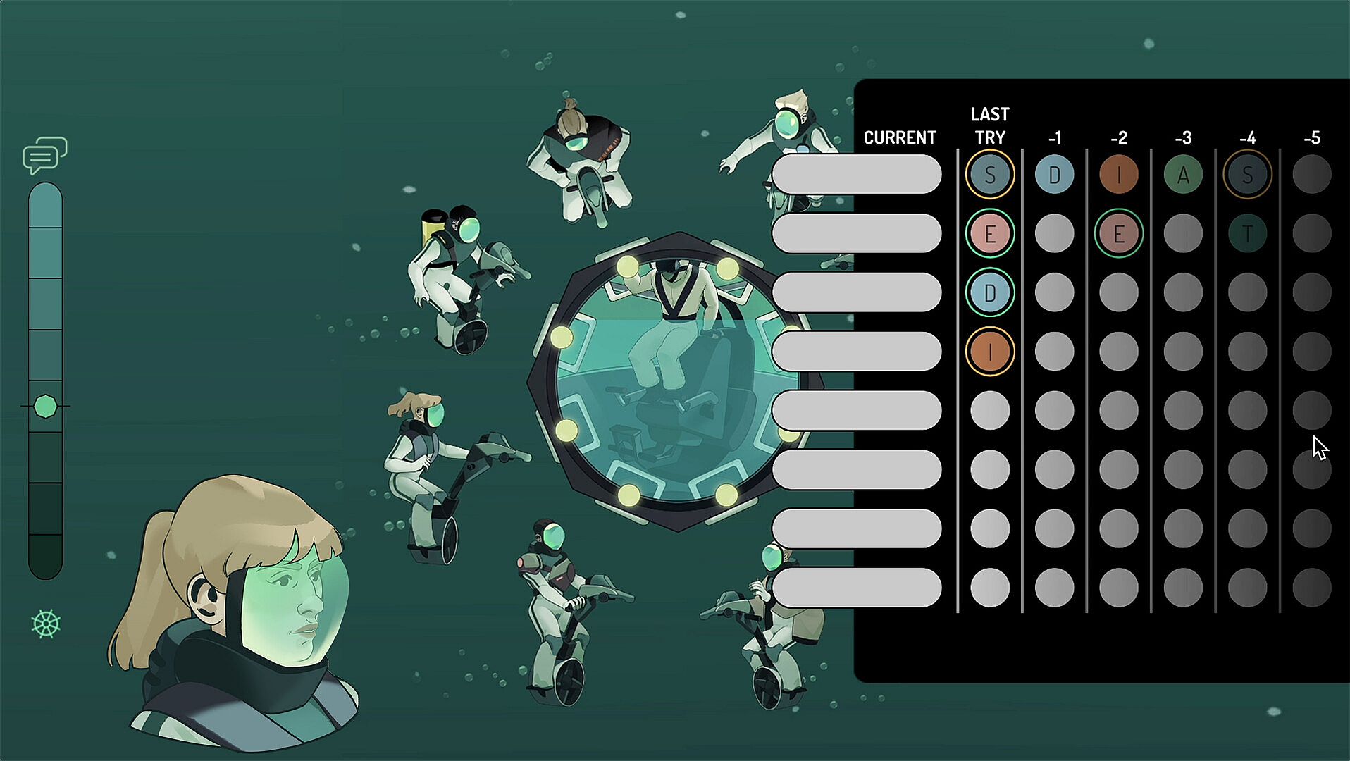 Manipulate the conversation—choose the right diver at the right time to gain leverage, unlock secrets, and steer the group toward survival.