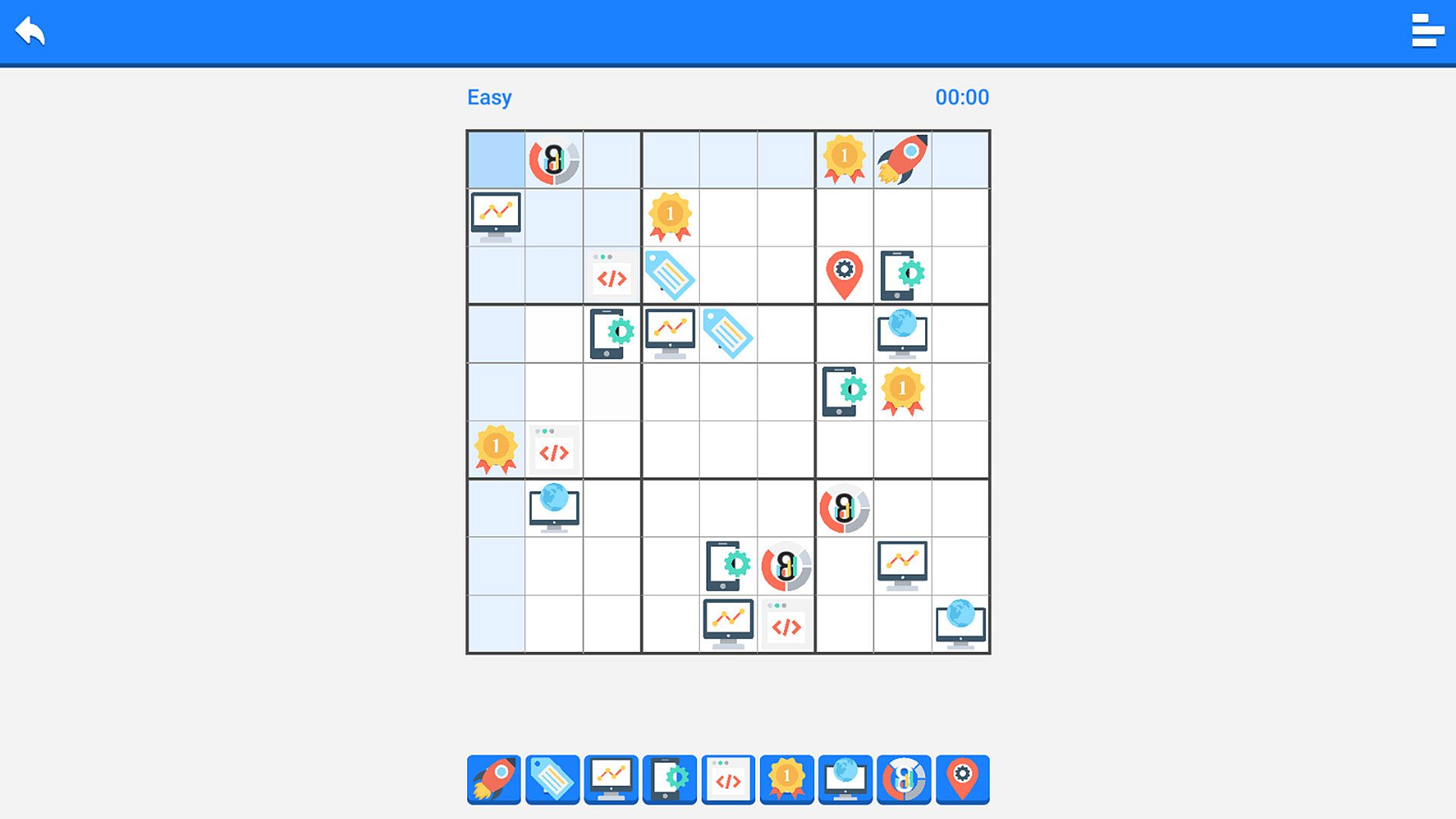 ■ Check each row, each column, and each block to see if there are any duplicate icons. Once all the cells are filled and the conditions are met, the challenge is successfully completed.