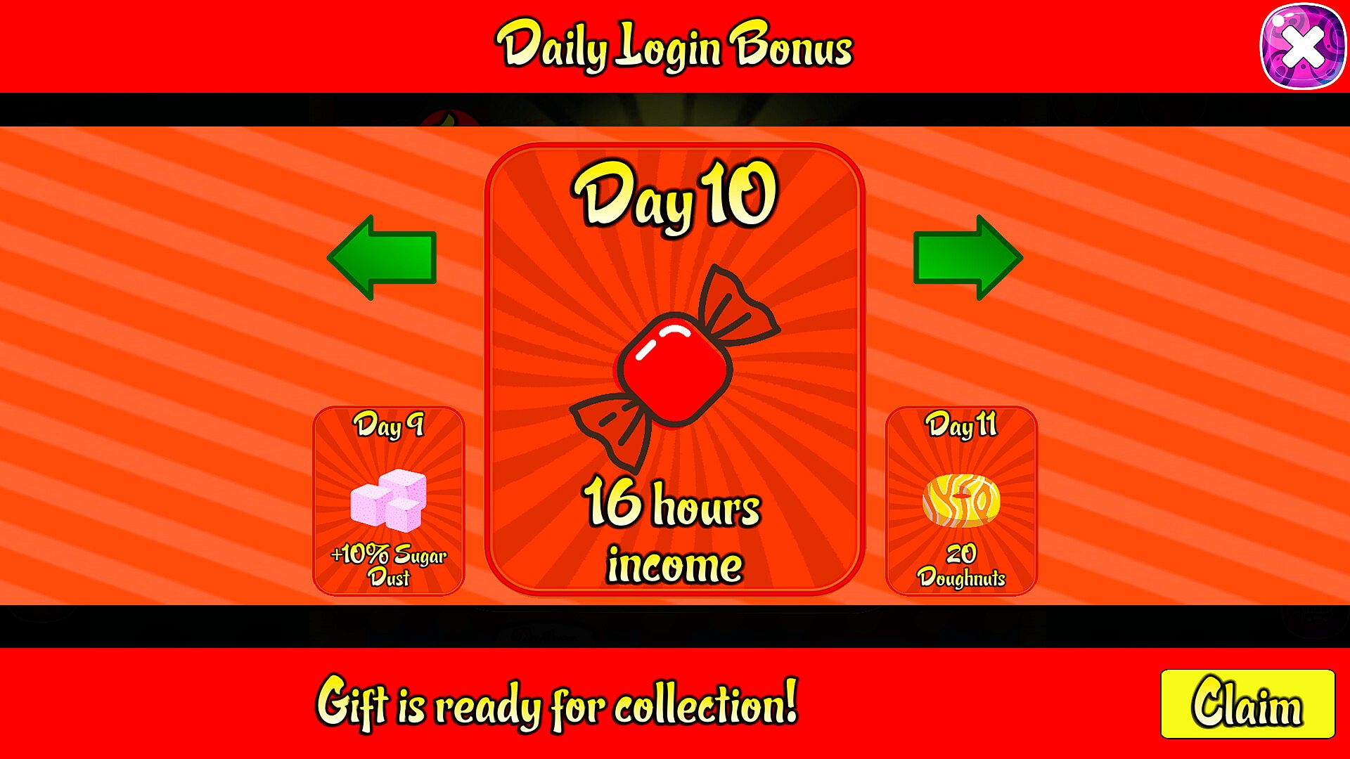 Daily Rewards: Log in daily to claim rewards! The more you play, the sweeter the bonuses. Don't miss out on the daily treats that await you in Sugar Rush!