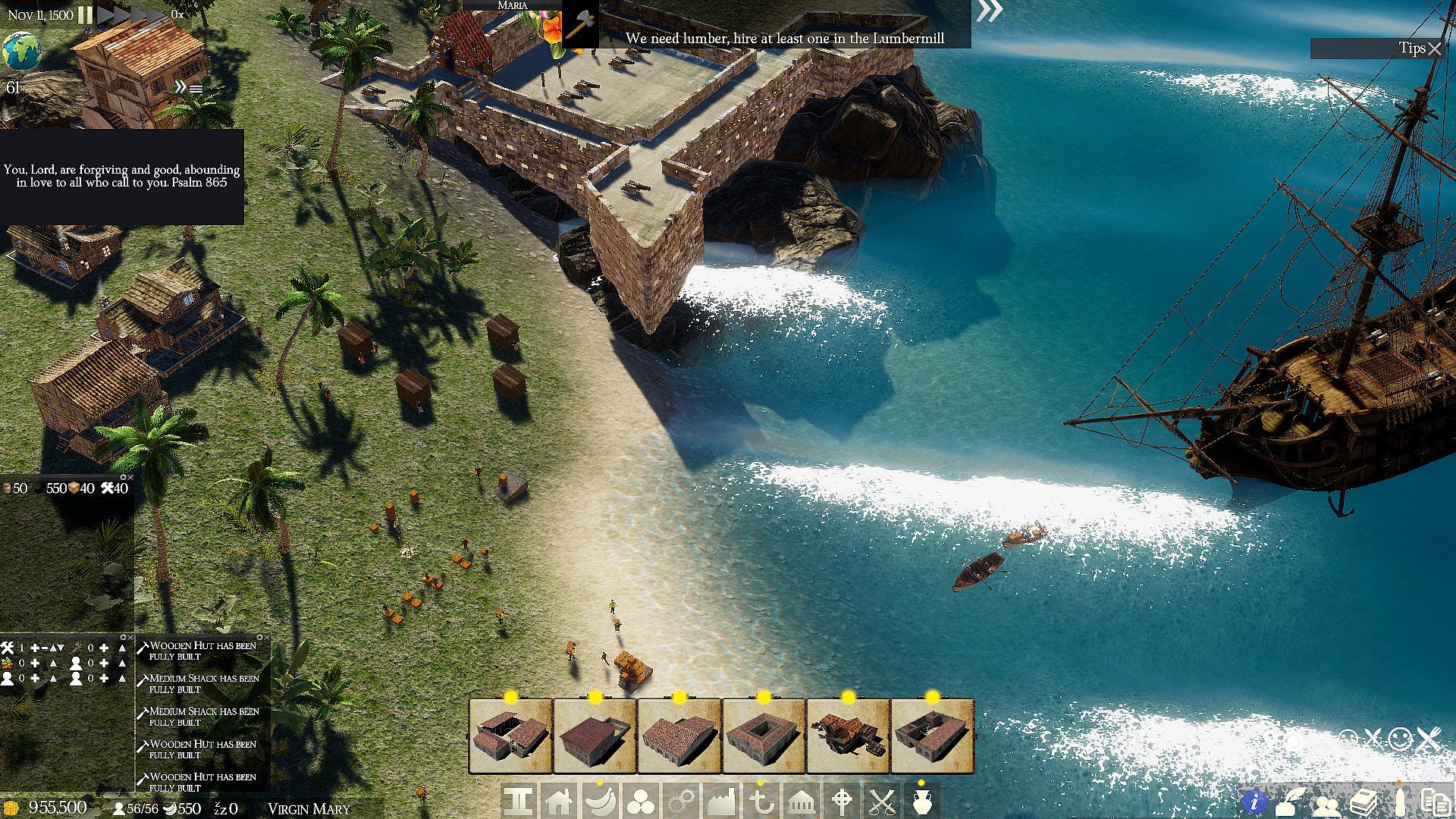 Building variety enhances customization, with options ranging from farms and mills to forts and docks. Production lines add depth, as you chain resources like sugar cane into rum or tools, creating economic webs that reward efficient layouts.