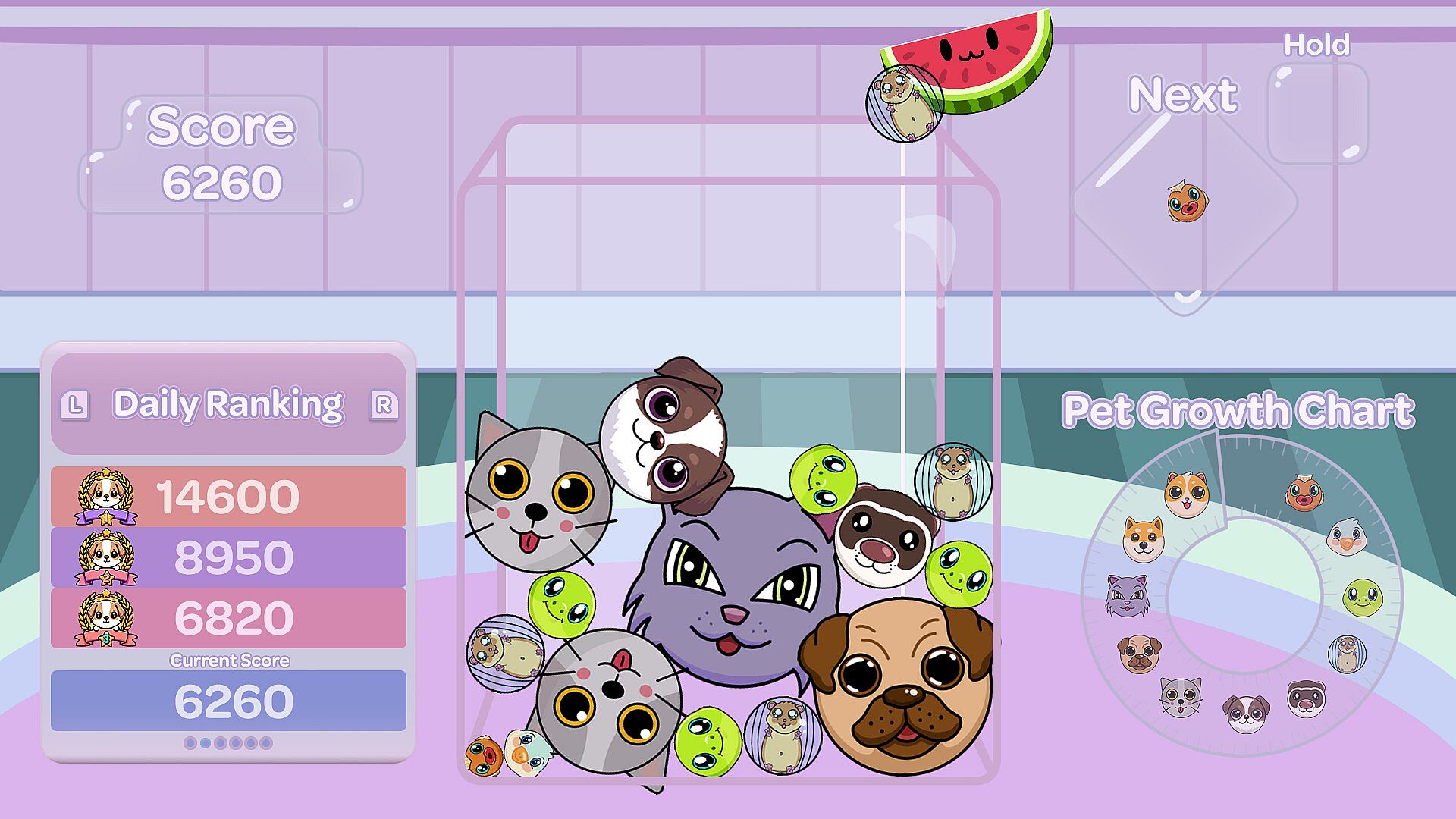 Adding to the Suika genre with increased ability to plan your moves more carefully to create more pet combinations!