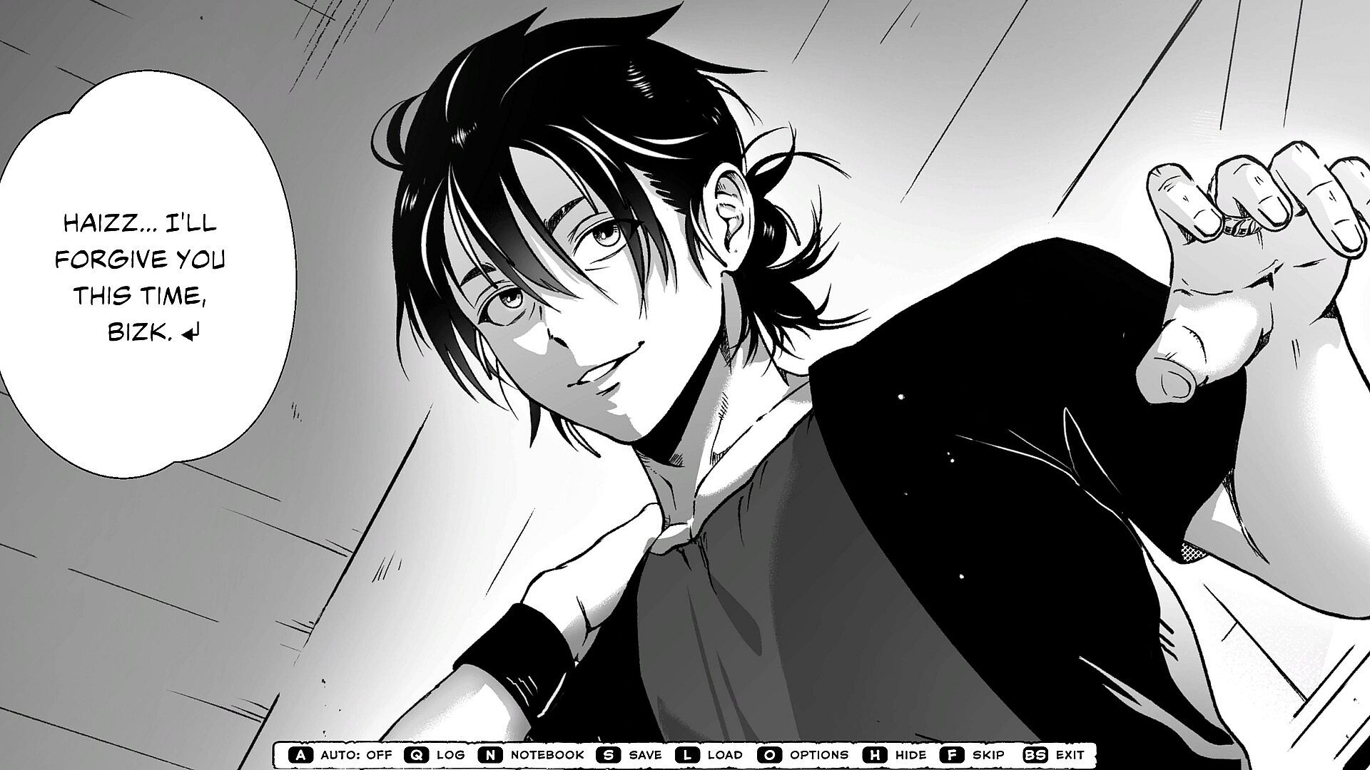 Designed to evoke the feeling of reading a manga, the game utilizes a striking black-and-white visual style that immediately differentiates it from standard visual novels.