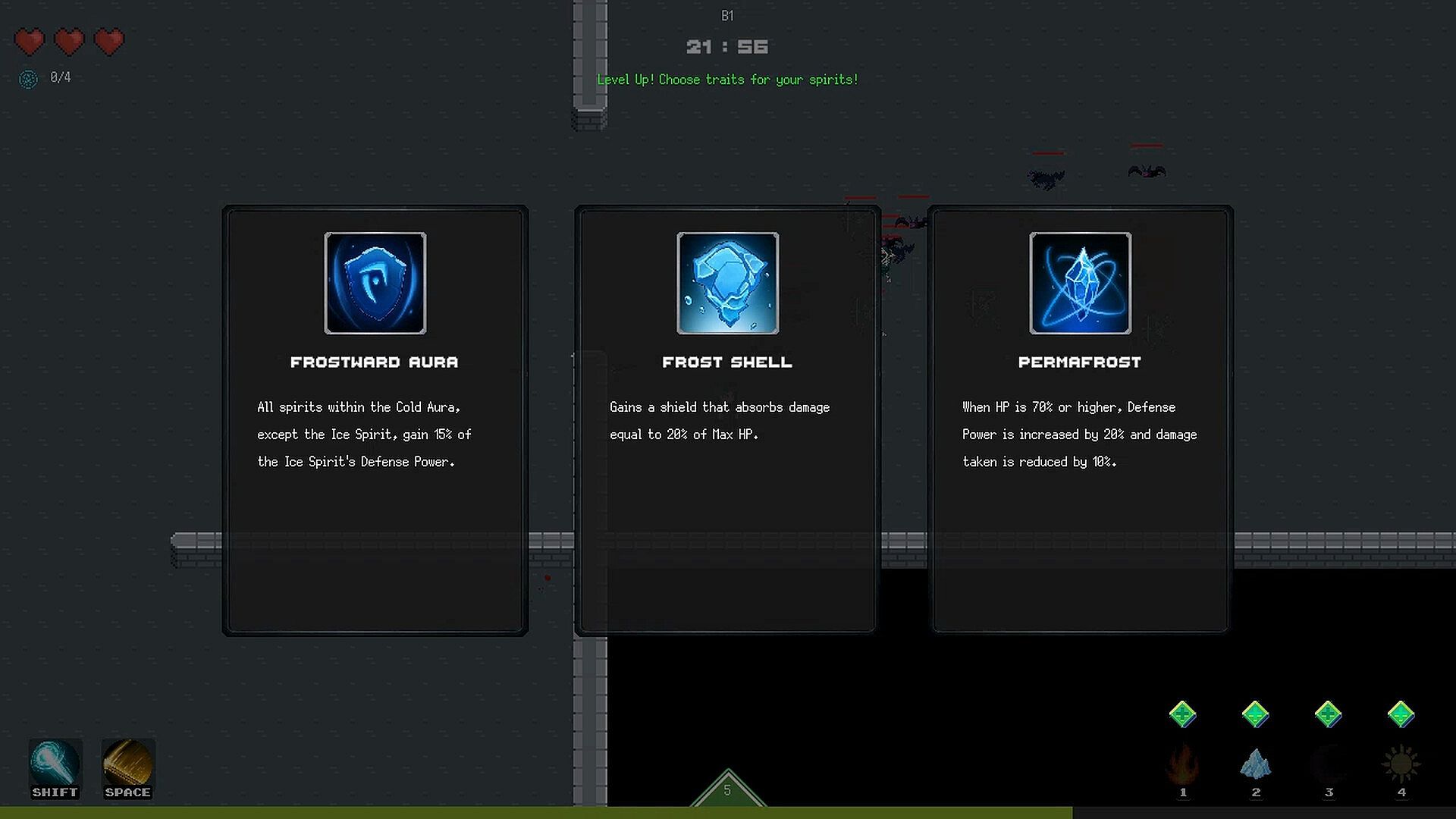 • Summon 4 types of spirits with different mechanisms: Fire, Ice, Darkness, and Light.