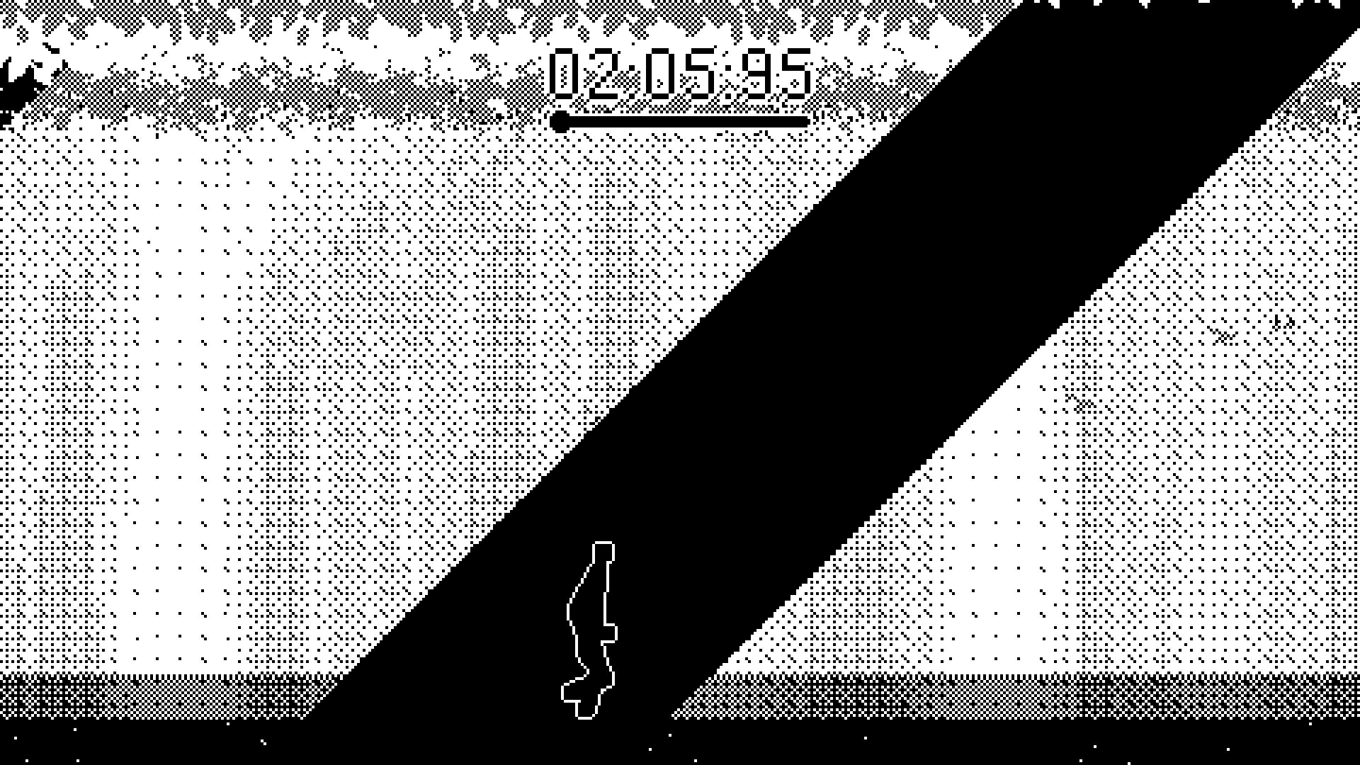 The 1-bit graphics give Sunburnt a distinctive retro aesthetic, where everything is rendered in pure black and white pixels for a clean, focused look. Twelve semi-hidden achievements add layers of discovery, rewarding exploration and skillful play without overt guidance. These elements combine to create a compact yet replayable experience, perfect for short bursts of intense action.