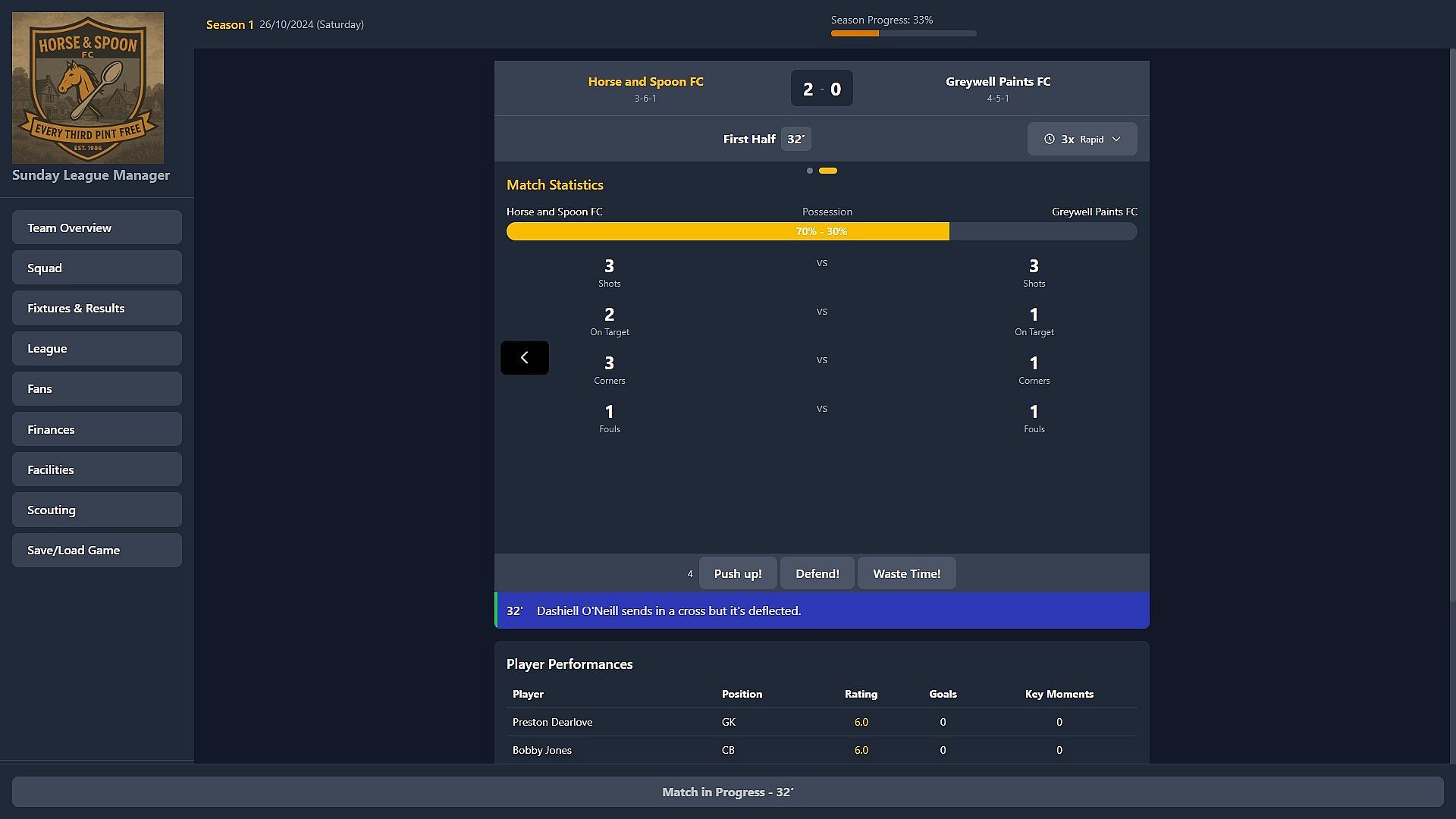 Take charge of Horse & Spoon FC, a once-proud pub team that's seen better decades. These days, their trophy cabinet holds more cobwebs than silverware, and their last "big signing" was Dave from the chip shop who reckons he's still got it (spoiler: he doesn't).