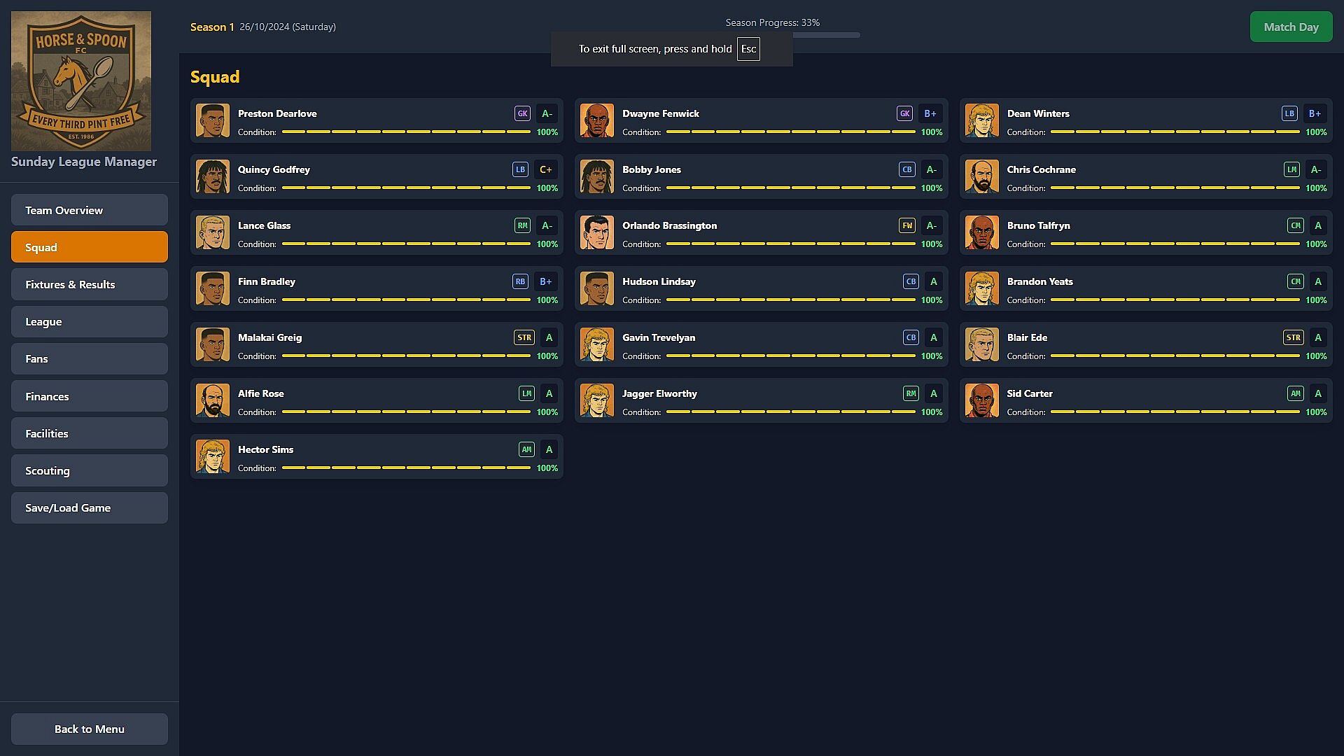 Experience football management as it really is for 99% of the country - muddy, chaotic, and absolutely brilliant. Where winning promotion means moving from the local park to an actual pitch, and your biggest transfer coup is convincing Big Tony to come out of retirement.