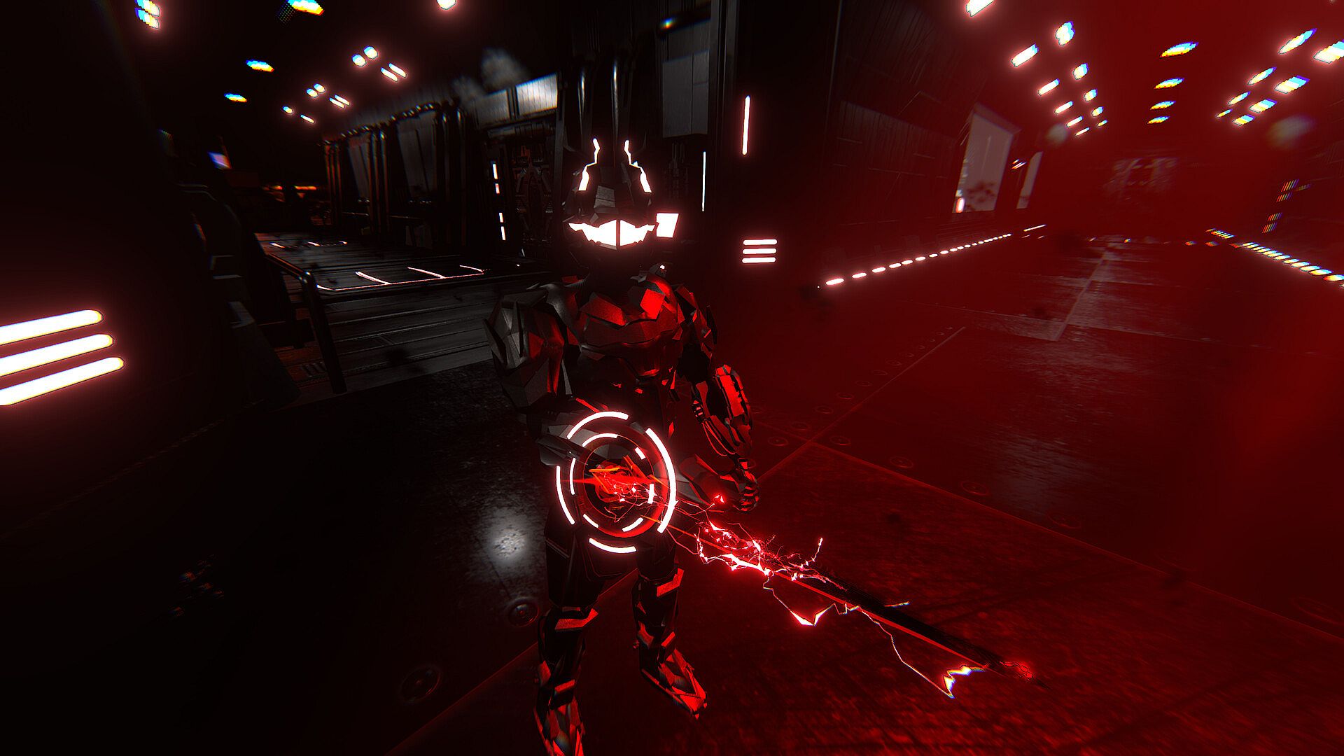 Your armor can be equipped and upgraded with a variety of abilities and weapons. All armor functions draw from a shared power pool — every ability and weapon uses watts to run. You can set voltage and current to tune performance: overclock for short bursts, or conserve power to stay online longer. Swap and upgrade modules to shape your playstyle (support, offense, or utility), and reconfigure your loadout whenever the situation calls for it.
