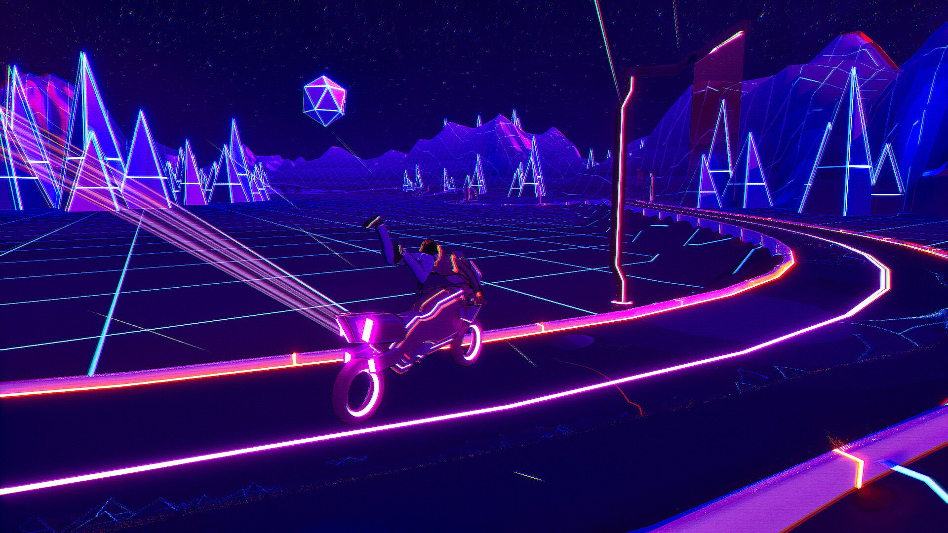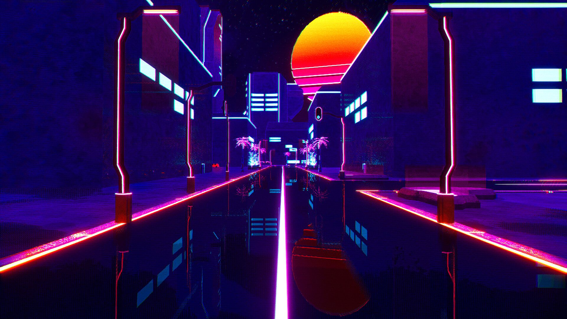 Stylized 80's synthwave retro-futuristic world