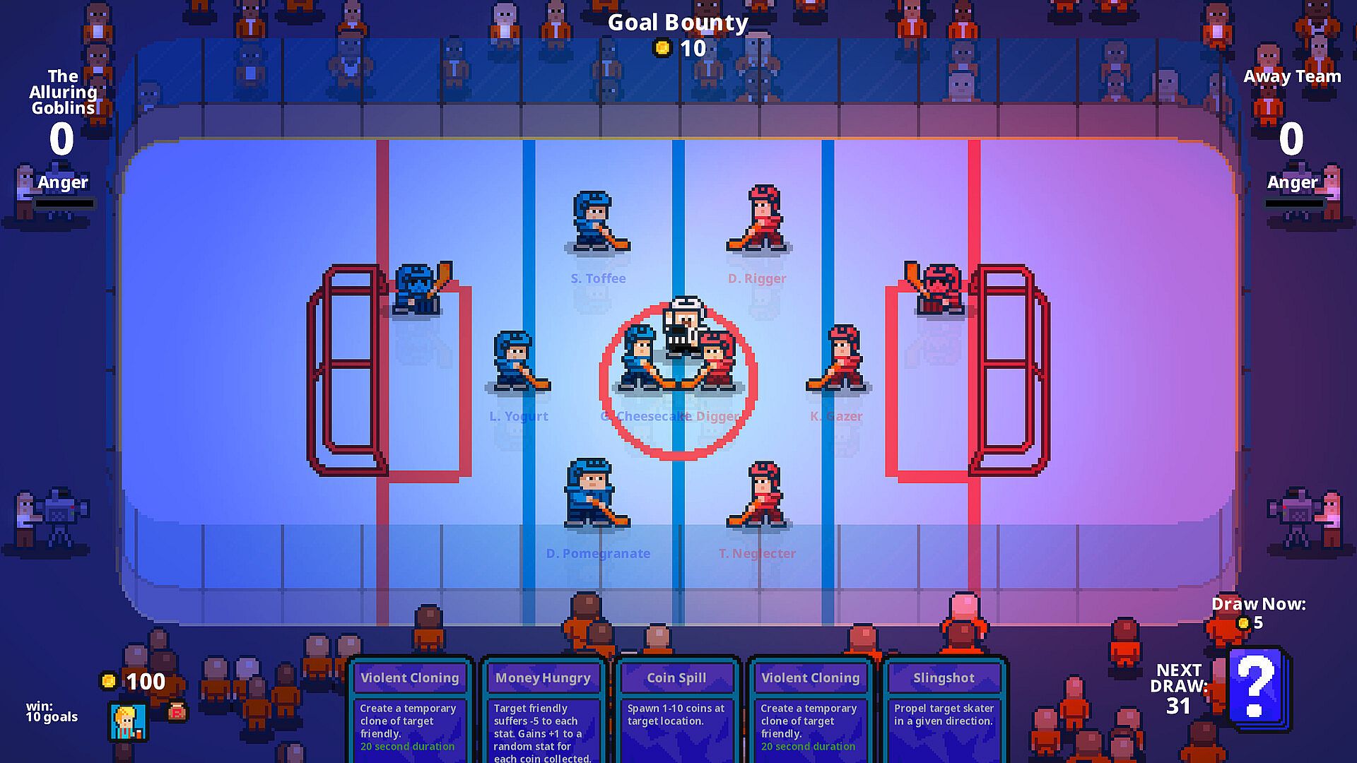 Step into the coach's shoes and watch the action from the sidelines as you unleash a deck of dirty tricks to sway the outcome of the match in this ice hockey auto-battler.