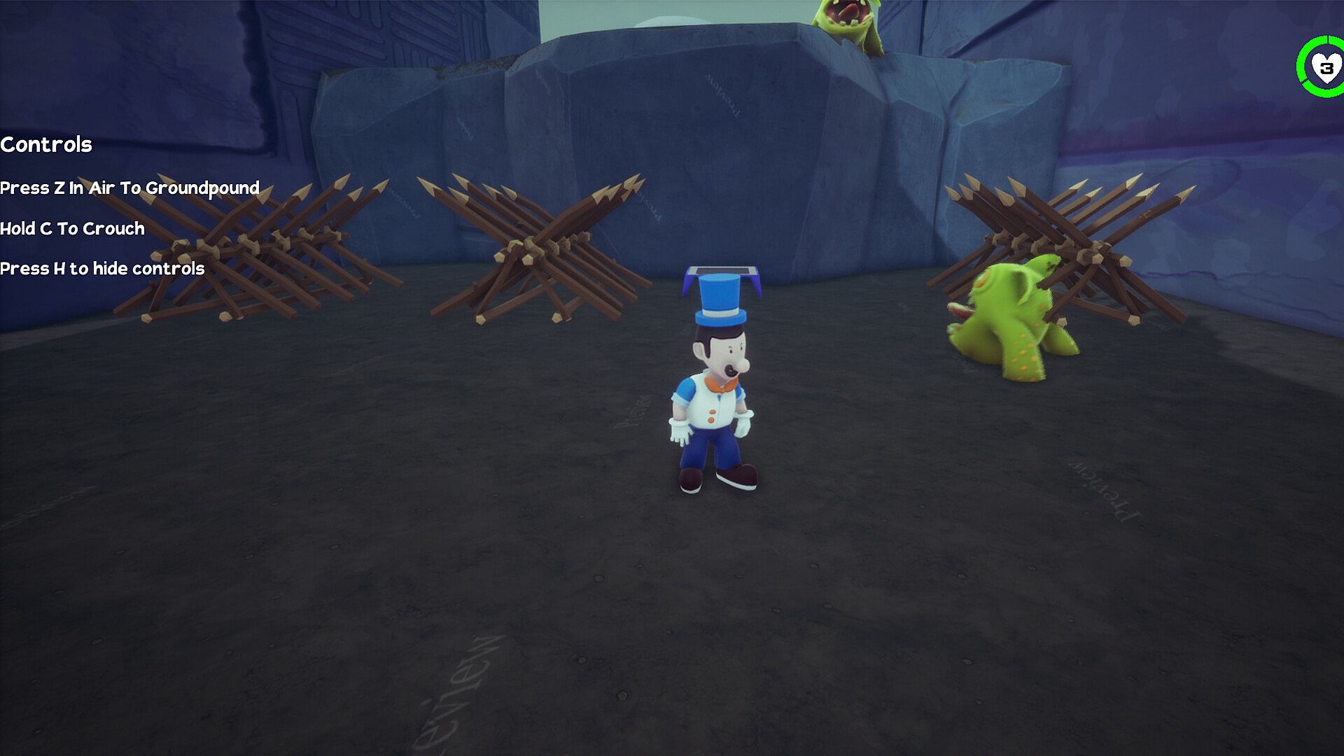 There is also other normal enemies like following slimes, walking zombies and running zombies. Also shooting cannons which shoot bunnies. Those all can be killed by jumping on to their head.