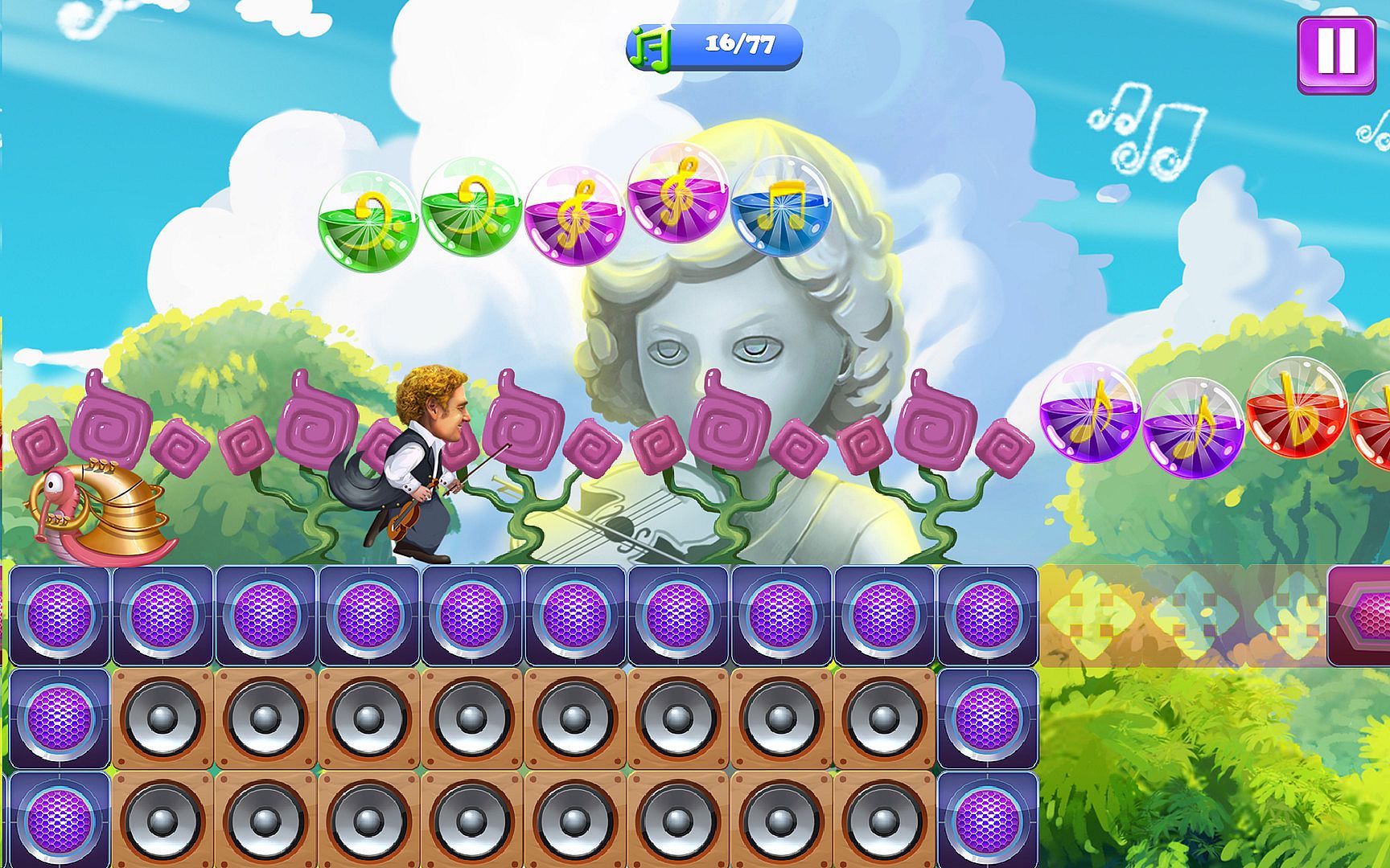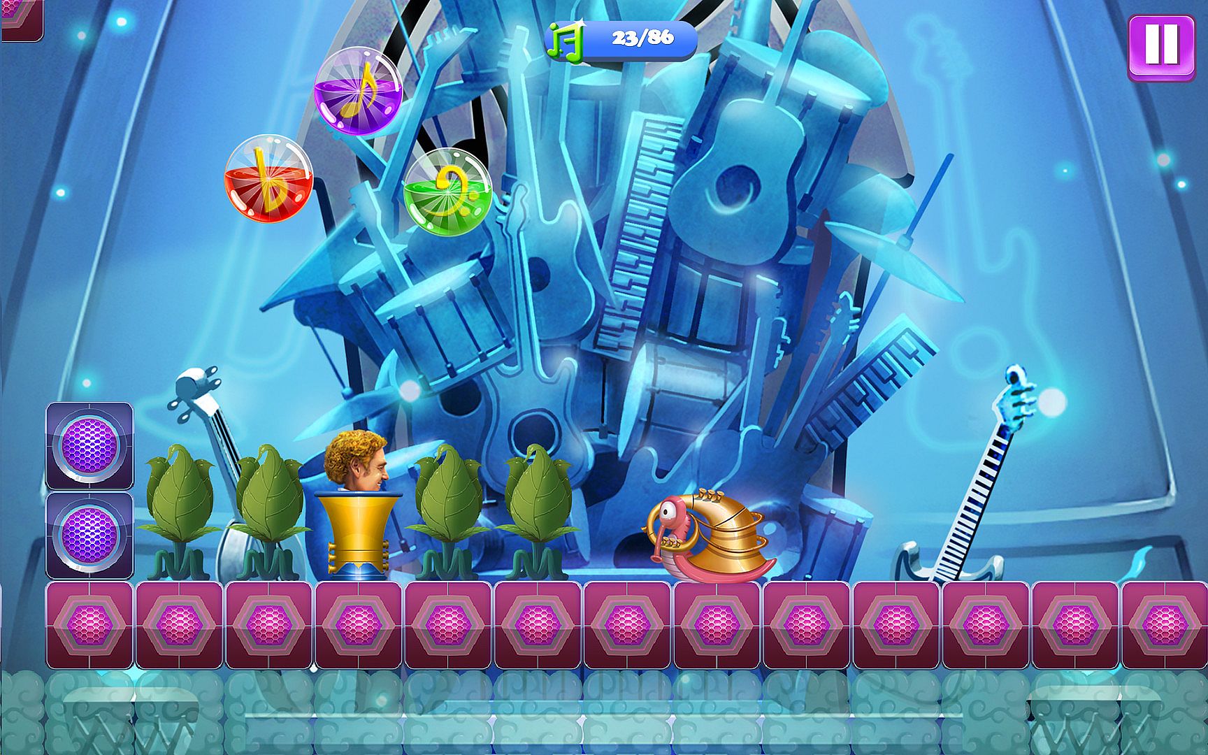 Collect all the note bubbles. Don't fall into the rift. Avoid all music instruments which are awaken to life.
