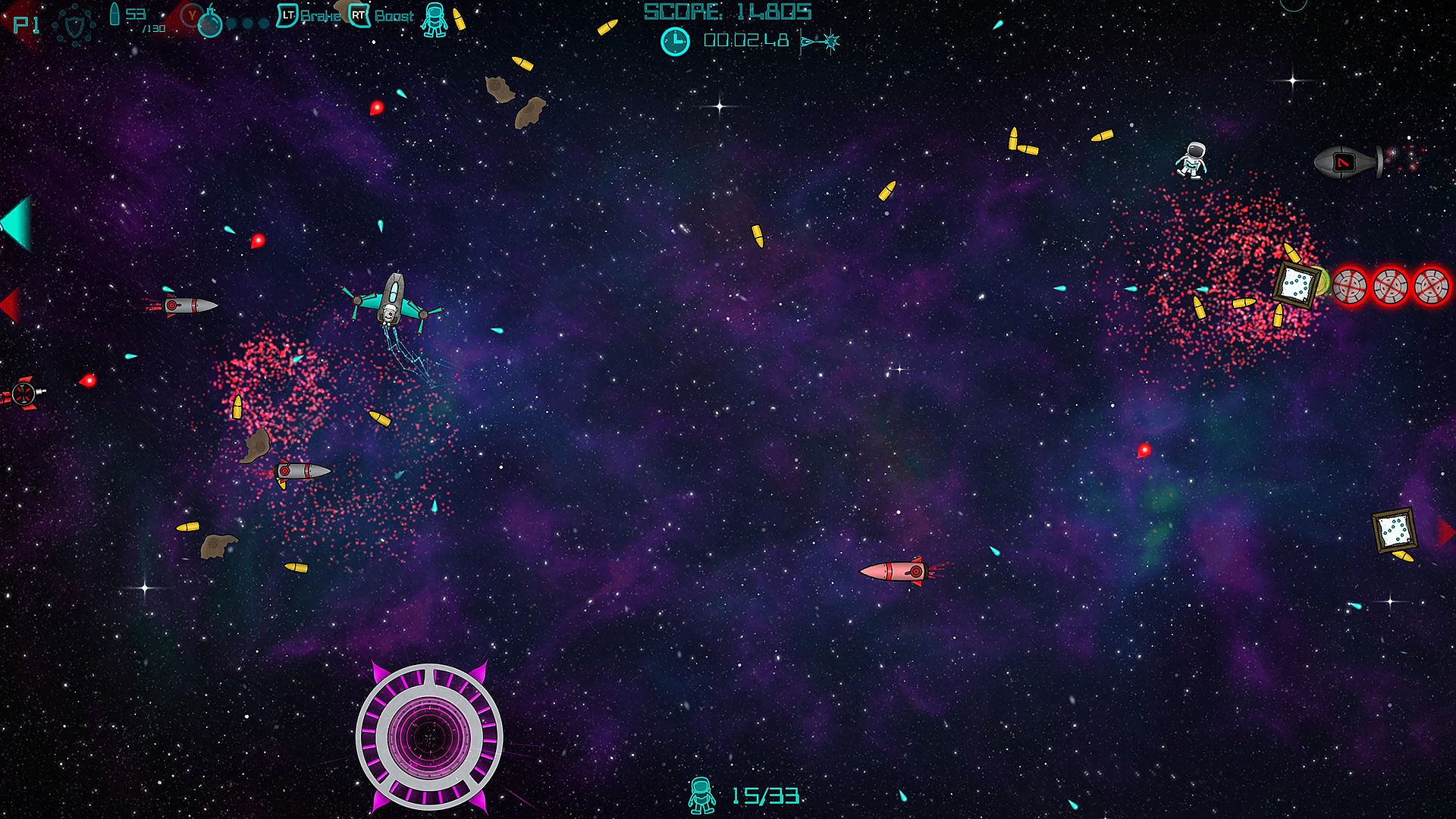 - Simple hand-drawn art-style allows you to easily pick out the foes amongst the asteroids.