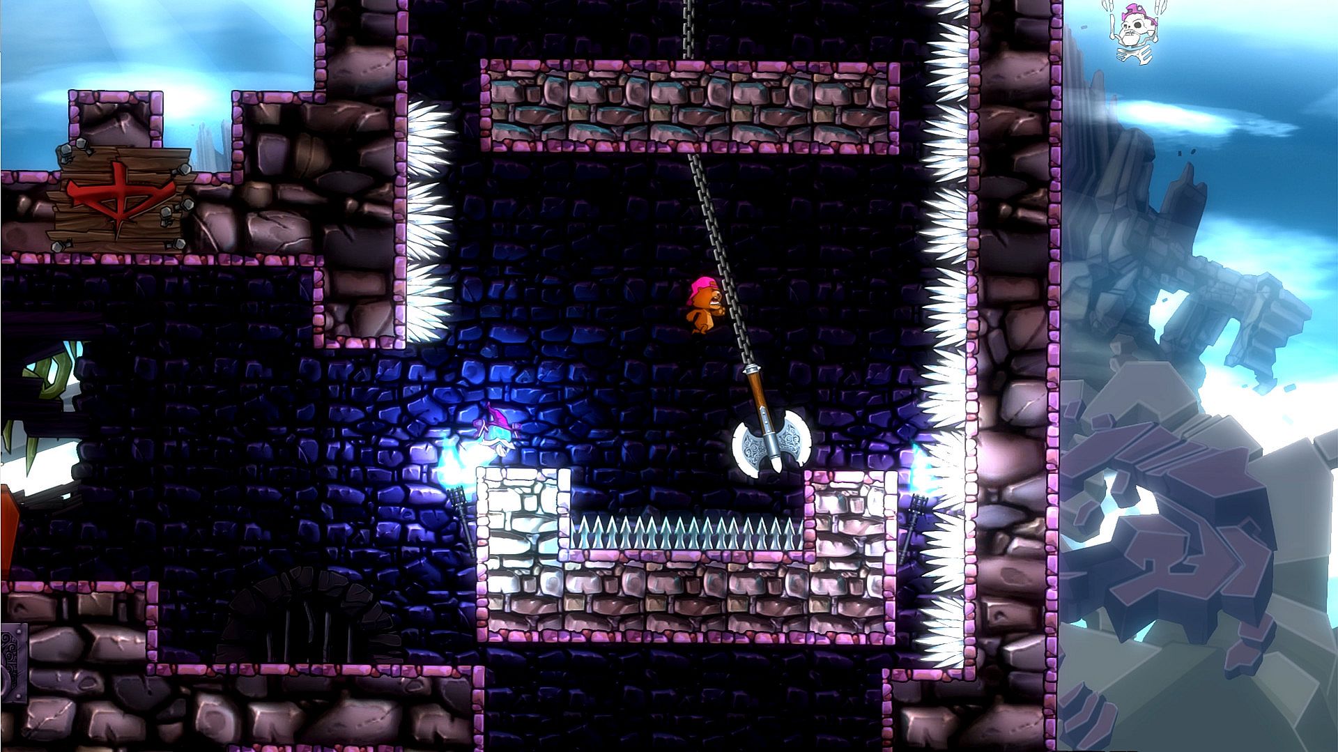 - Sightseeing - Run, jump and die your way through sprawling levels, facing fiendish challenges across seven diverse worlds, from ancient ruins to convulsing flesh dungeons.