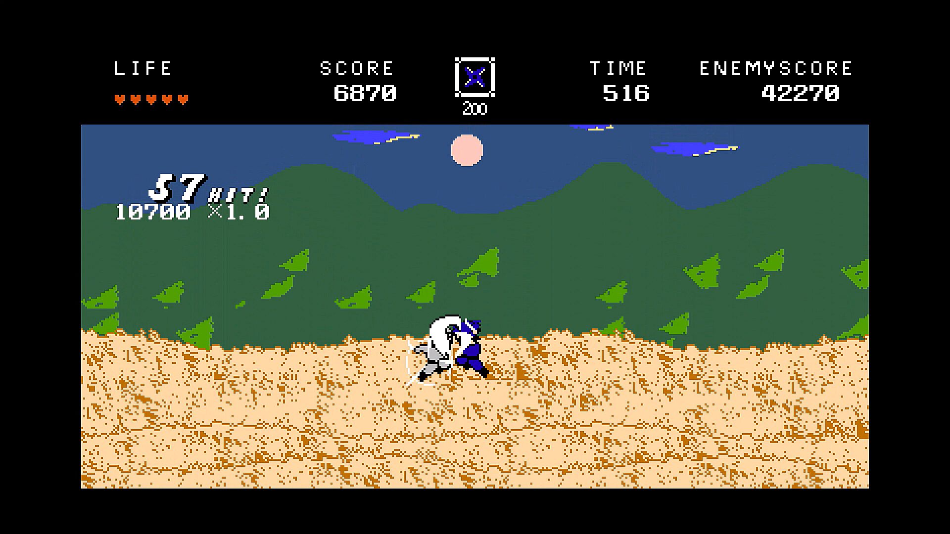 This is a simple and exhilarating side-scrolling action game inspired by classic ninja games like Legend of Kage.