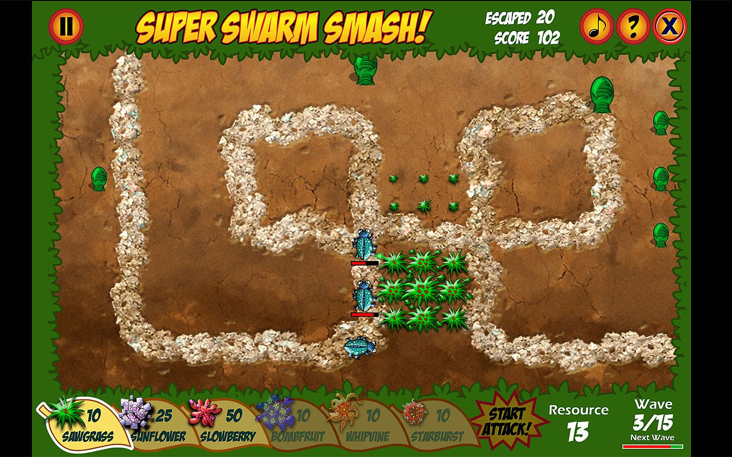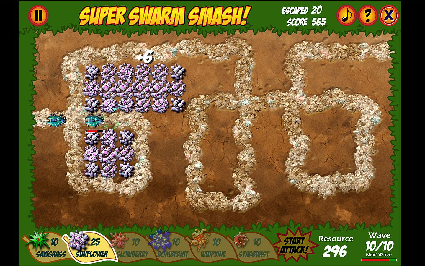 Super Swarm Smash is a new style of "Tower Defense" game. Armies of hungry insects are attacking your garden. Arrange groups of Plants along the path of the of bugs to stop them.