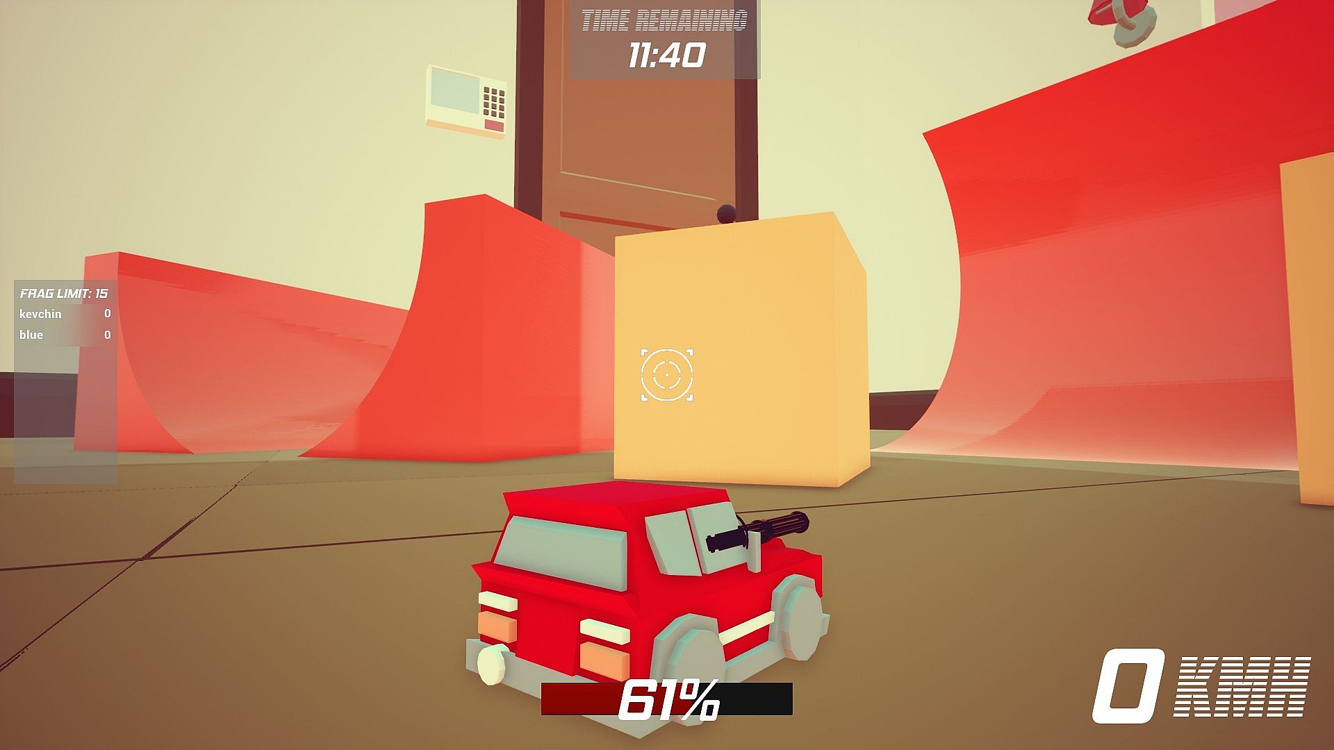 Drive a toy car around in a bedroom and pepper your friends with bullets.