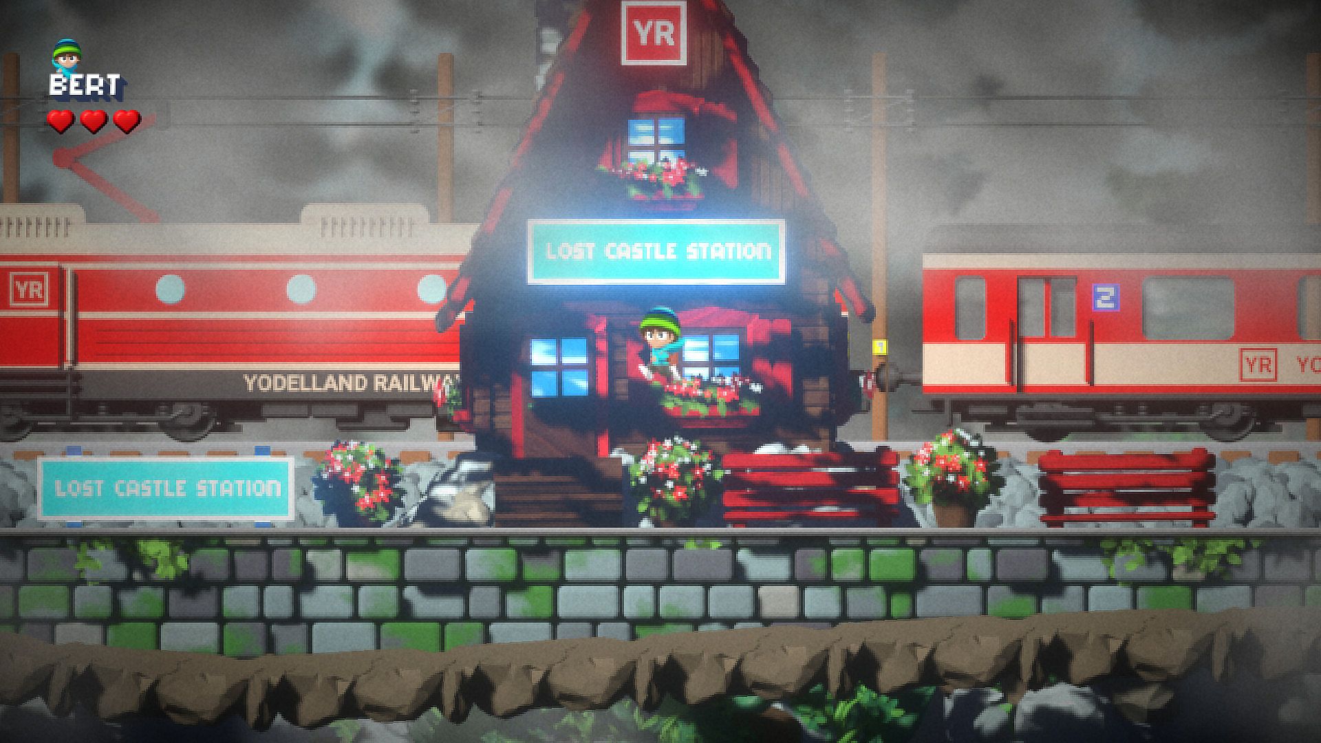 Jumping is crucial to make way in the rough terrain of Yodelland.Bert can even âDOUBLEJUMPâ by pressing the âJUMP-Buttonâ twice, right from the start.