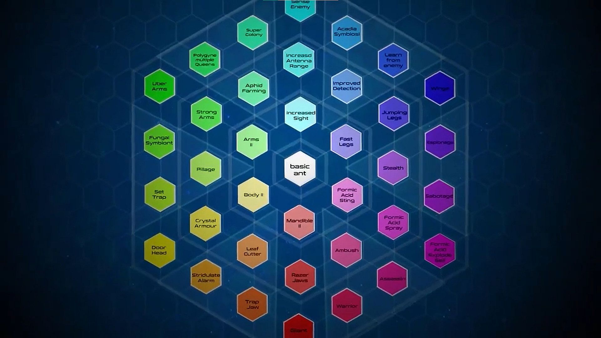 With 6 parts on each ant, the number of potential combinations for building new ant castes is vast. Try different combinations for different situations and strategies.