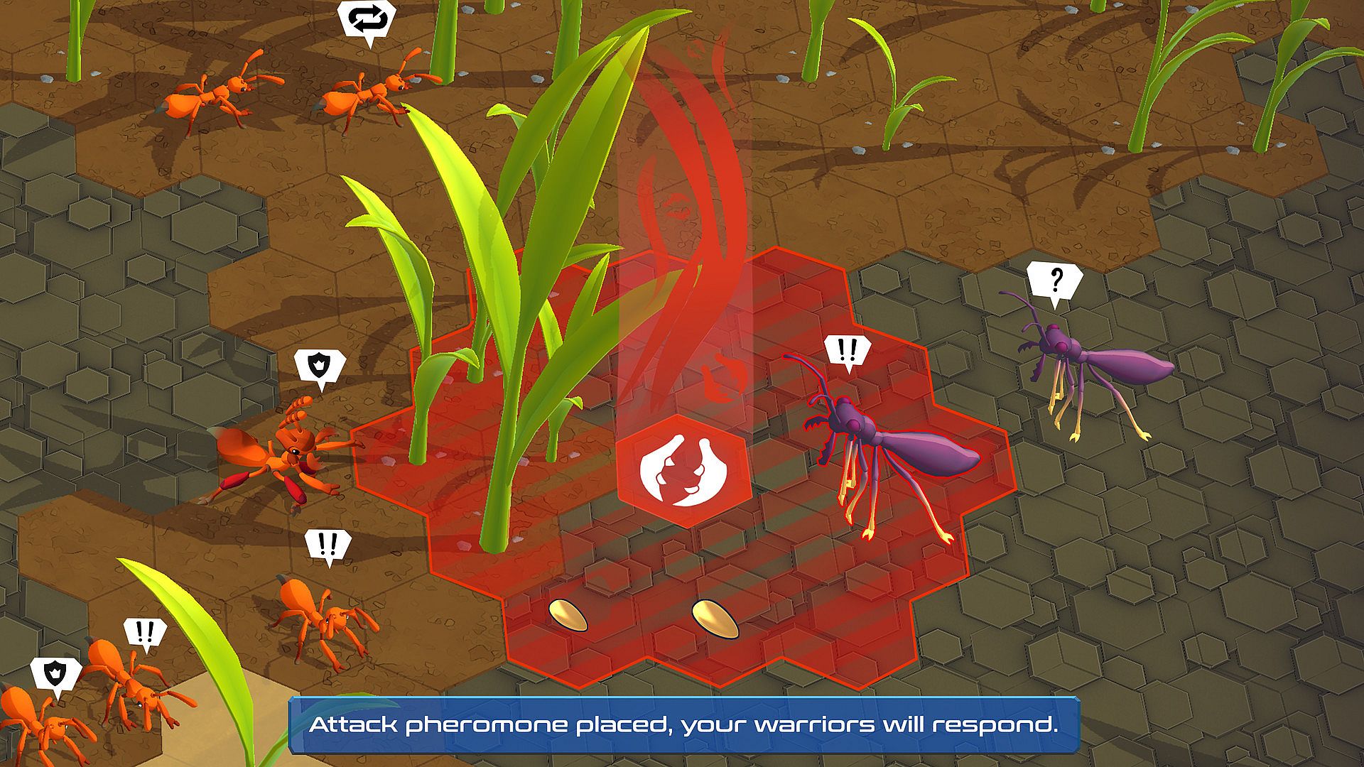 Direct your ants through the world using pheromone markers, guiding them with war, scouting, and harvest pheromones. Watch as your entire colony responds to your commands with complex behaviors.