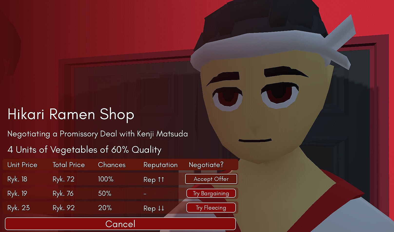 Negotiate through risky deals, where each decision counts towards your success. Rip off or be ripped off by dealers, suppliers & restaurants. Decide and invest in building relations with the people who will further your goals. Careful though cause appearances can be deceiving. Work through unique experiences with individual characters to build a relation or break one.