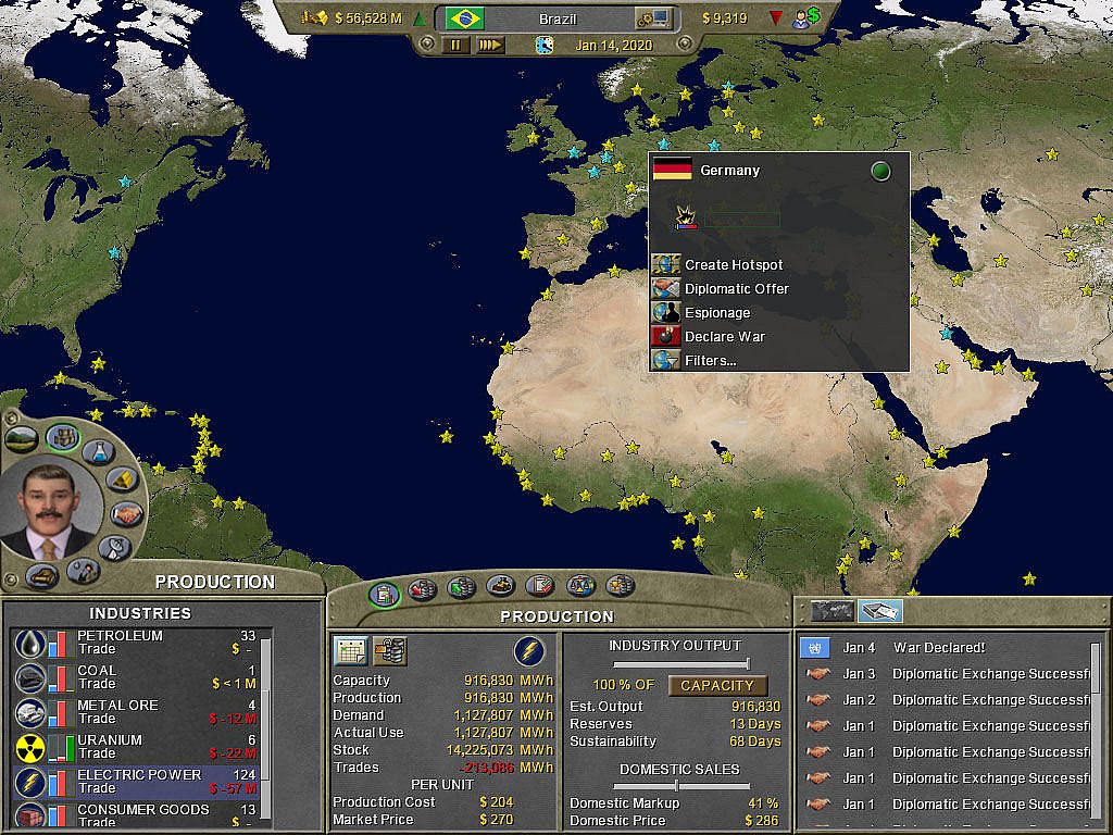 • Detailed diplomatic, economic, and political models
