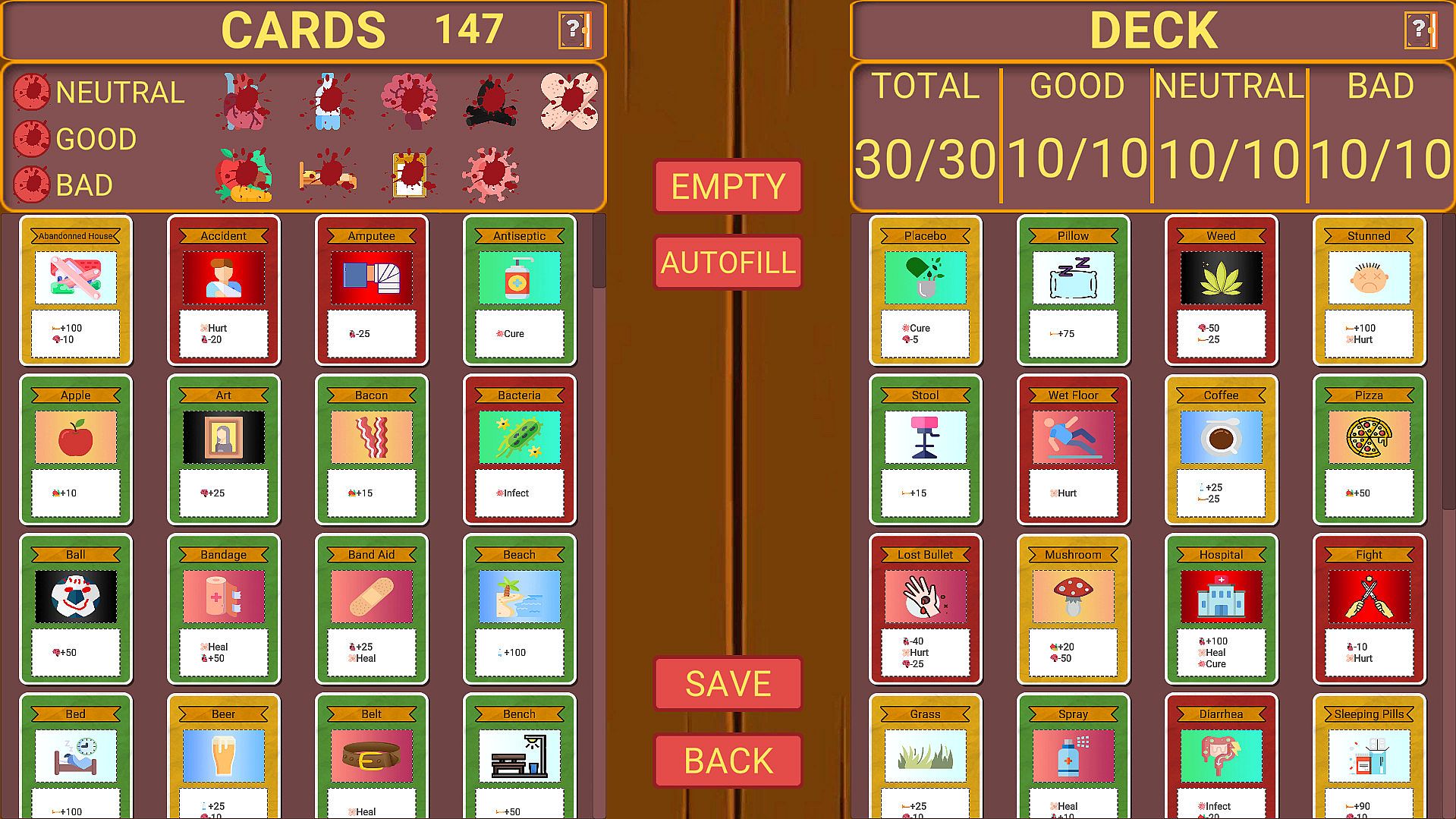 More than 140 cards with many effects that will affect you stats, 15 events randomly happen some days.