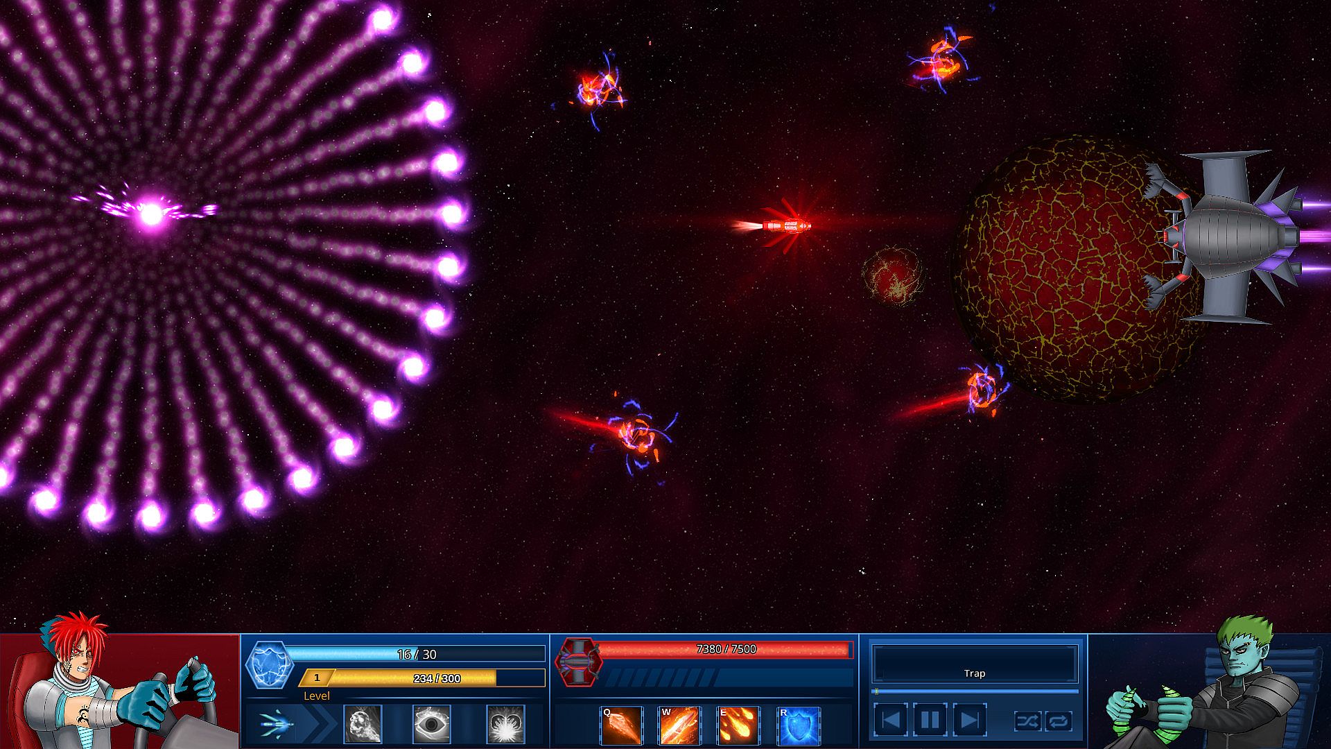 • Game modes: Additional enemies, Planet fortresses and Asteroids. Active them to make game more interesting.