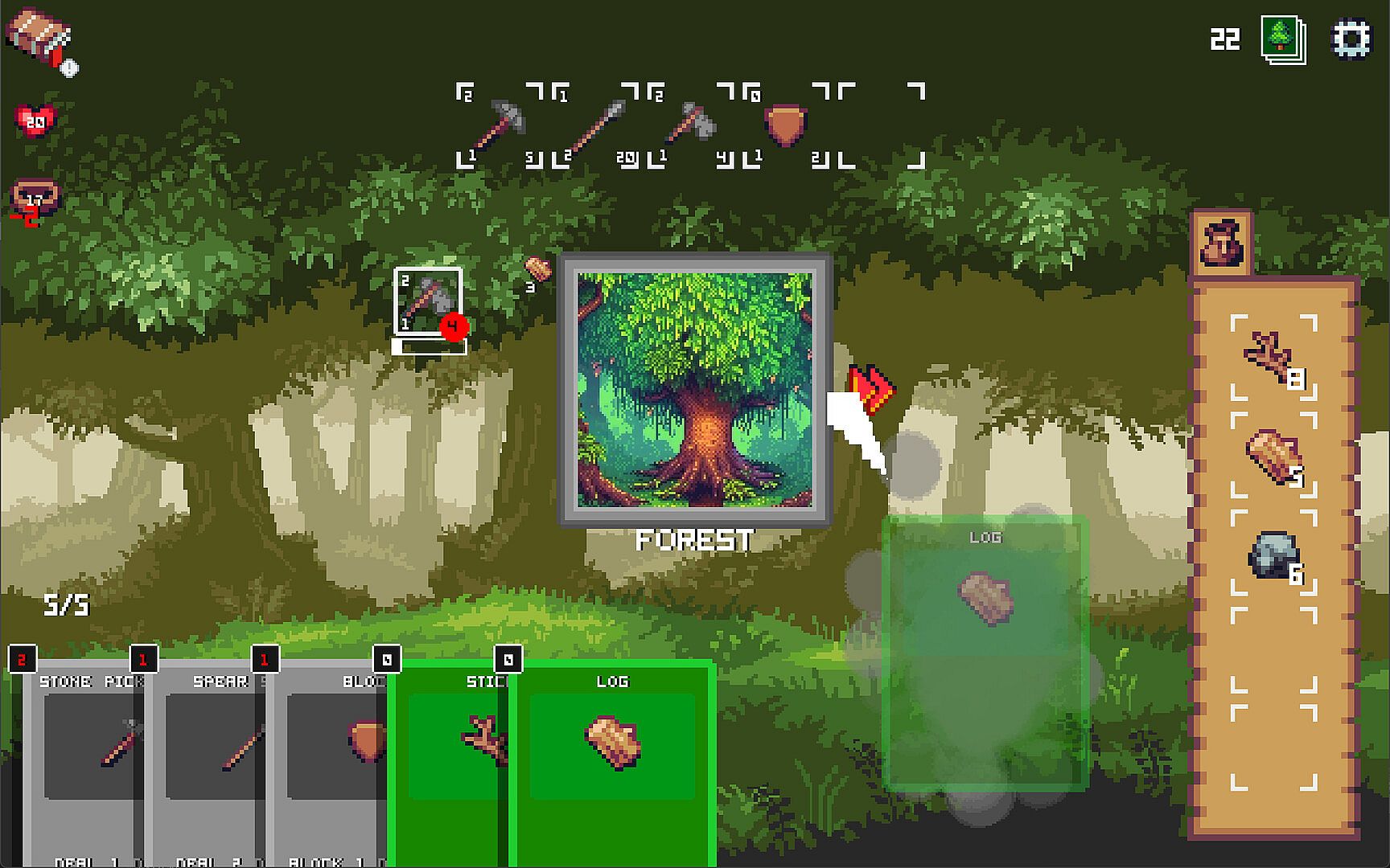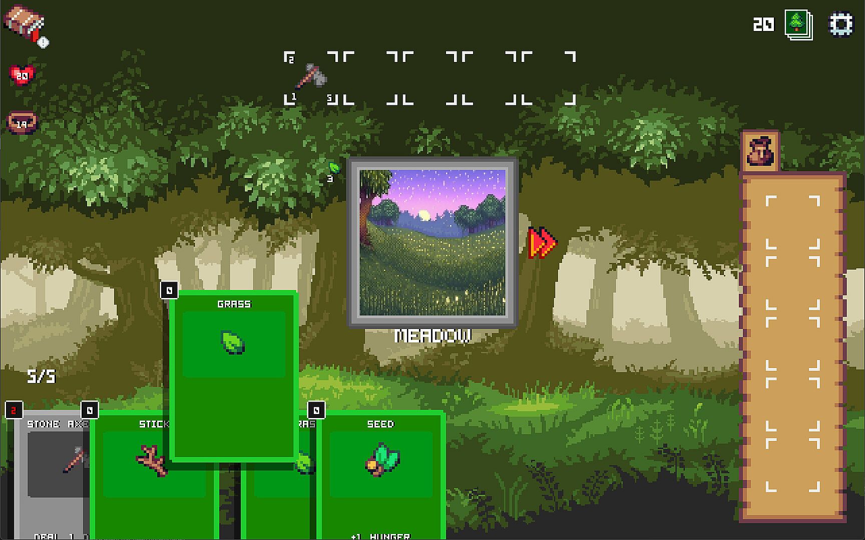 Survive the Cards is a survival deckbuilder like game where you craft tools and items that add cards to your hand using the resources you have gathered so you can fight and survive against monsters, hazardous and/or beneficial encounters, and different bosses.