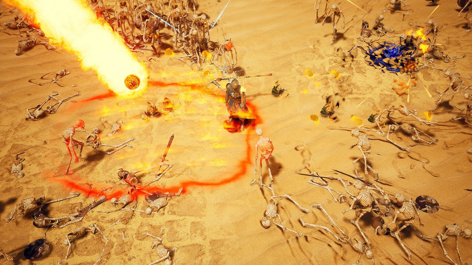 The longer you survive, the more challenging each round becomes. Every enemy type has unique strengths and weaknesses, including elite versions of each. Stay vigilant—legends speak of colossal ancient titans wandering the vast desert.
