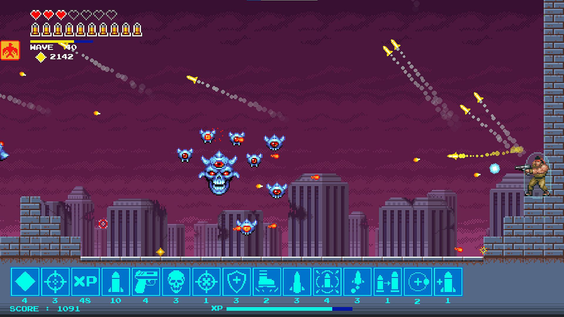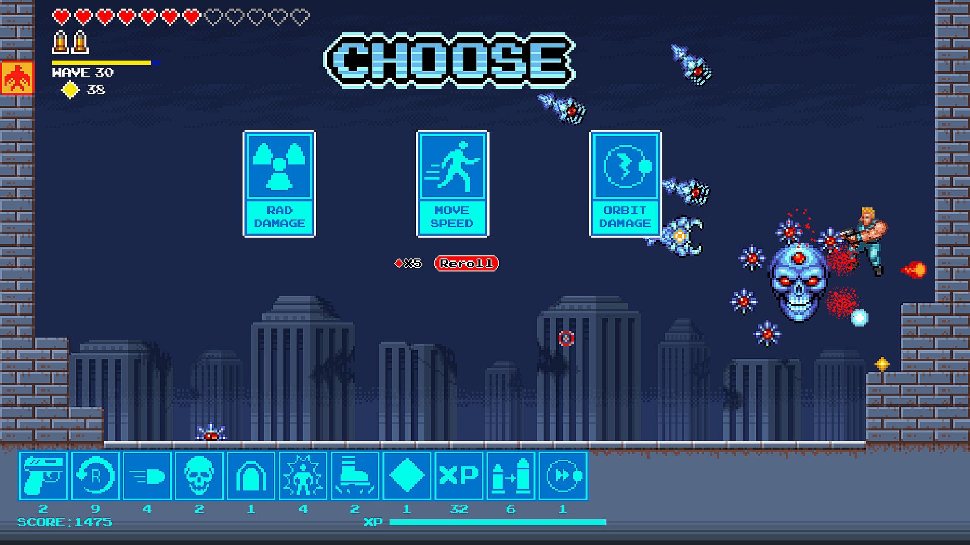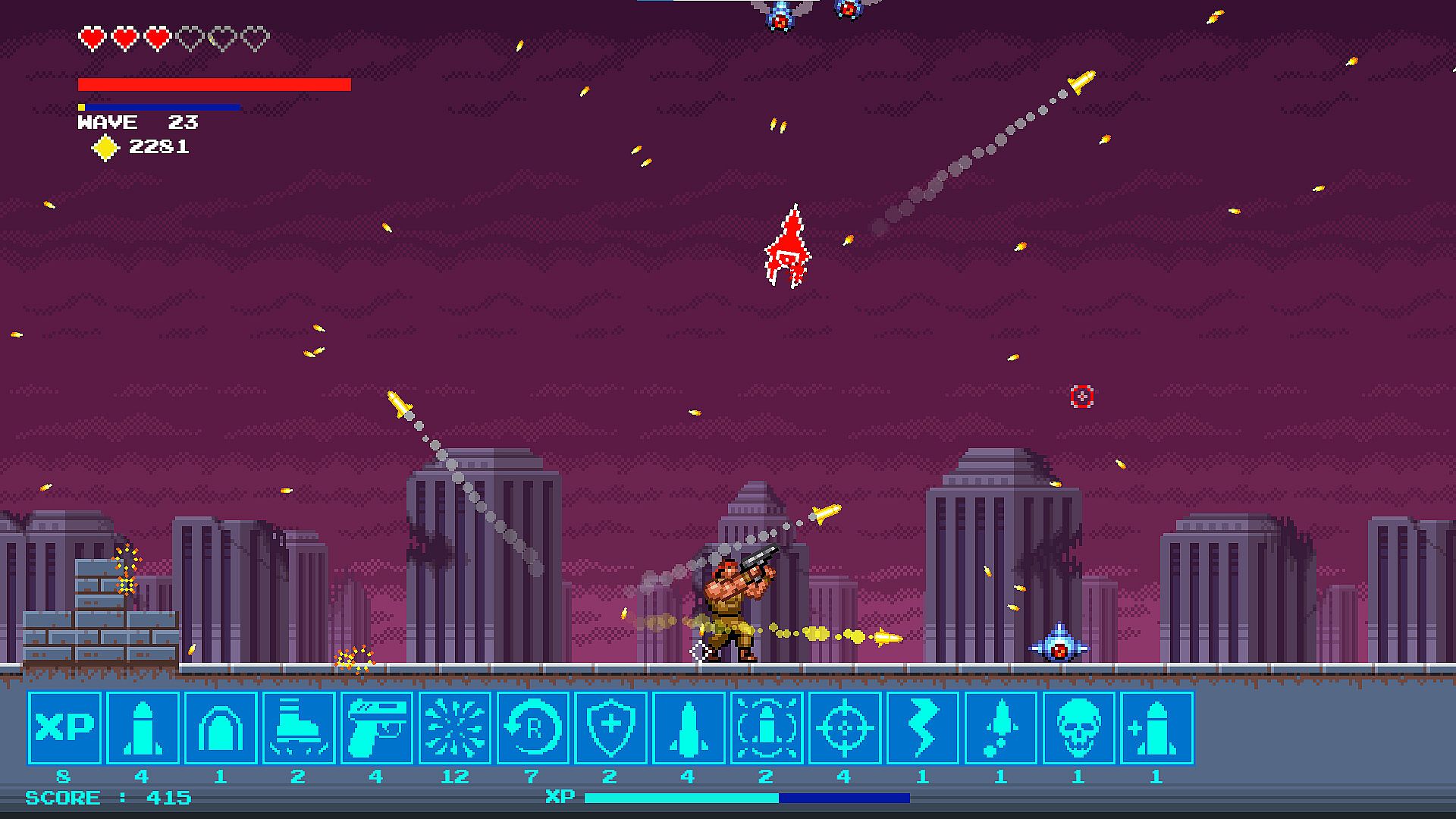 Survivors Last Stand is a rogue-like action shoot 'em up game. Kill aliens to upgrade your weapons. Harvest gems to unlock permanent upgrades and new characters to play or just reroll a new hand of cards to choose from. Create wild combinations of weapons and abilities for crazy builds with each playthrough!