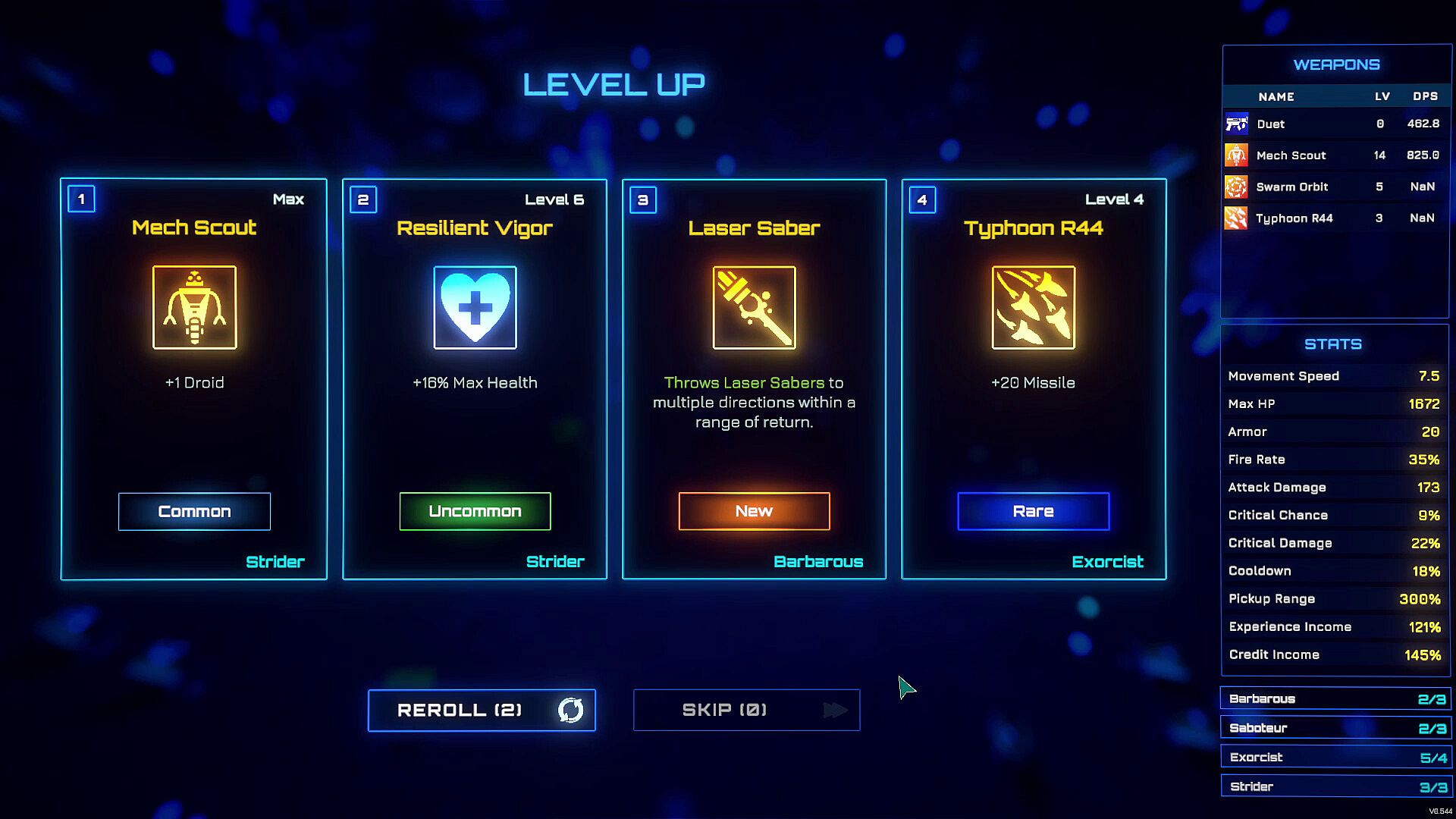 Feeling overwhelmed? Activate the S.O.S to catch your breath. Craving more action? Summon extra hordes at Wanted. Tag along with the Spider bot to heal, and react to the Unknown Signal for more or less dificulty and find some Reroll or Skip chances if lucky enough!