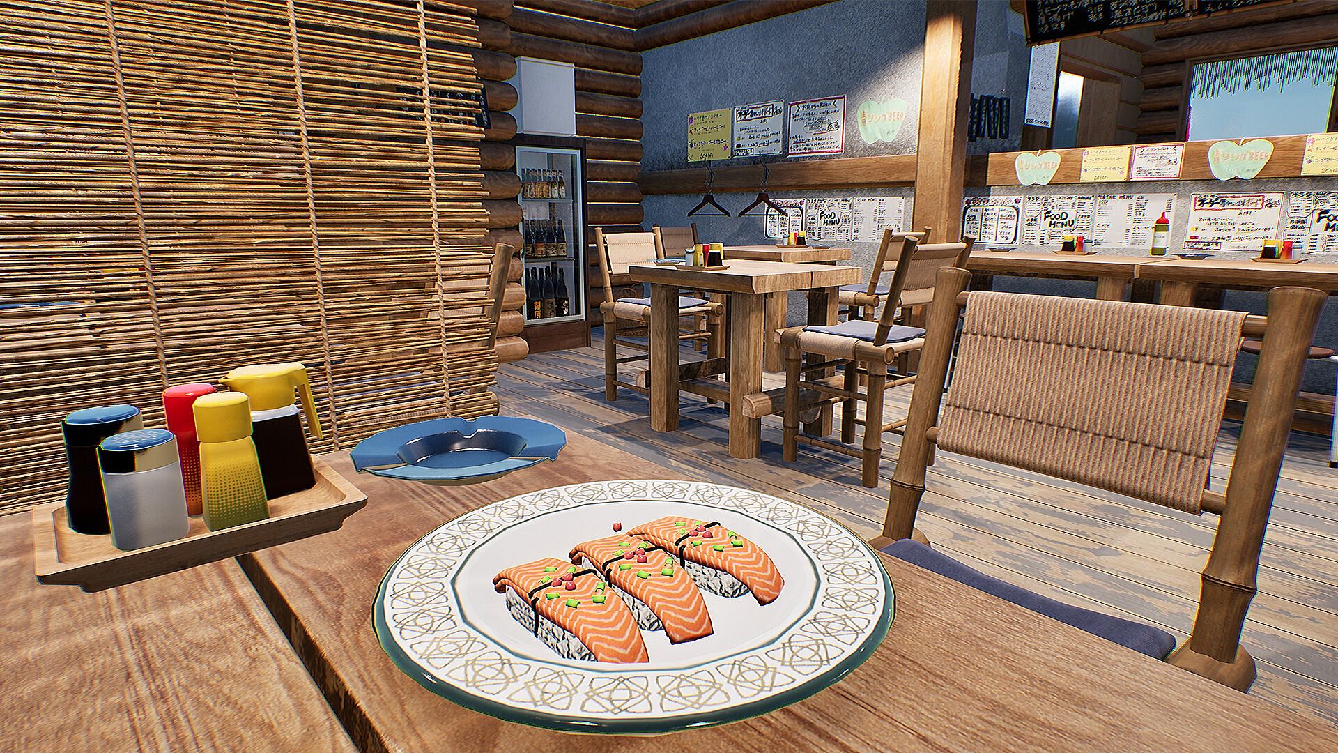 Sushi Simulator focuses entirely on the restaurant experience. All gameplay takes place in the kitchen and serving area, highlighting the feeling of preparing sushi and interacting with customers. Every step is clear and controlled.