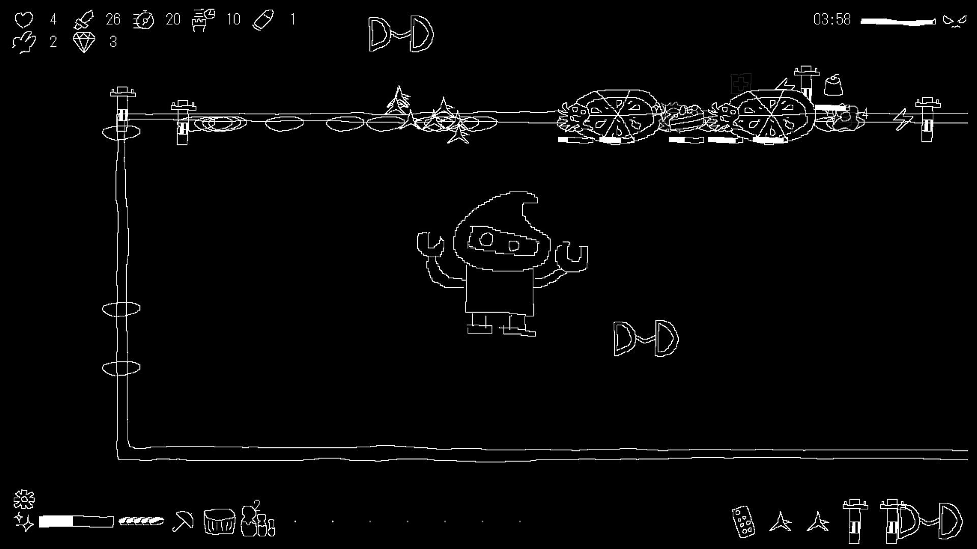 The primary mode focuses on surviving waves through repeated cycles of purchasing and defending, aiming to outlast the timer in a single, escalating stage. After clearing the main game, an extra mode unlocks, allowing continued play on the stage for extended challenges and higher scores.