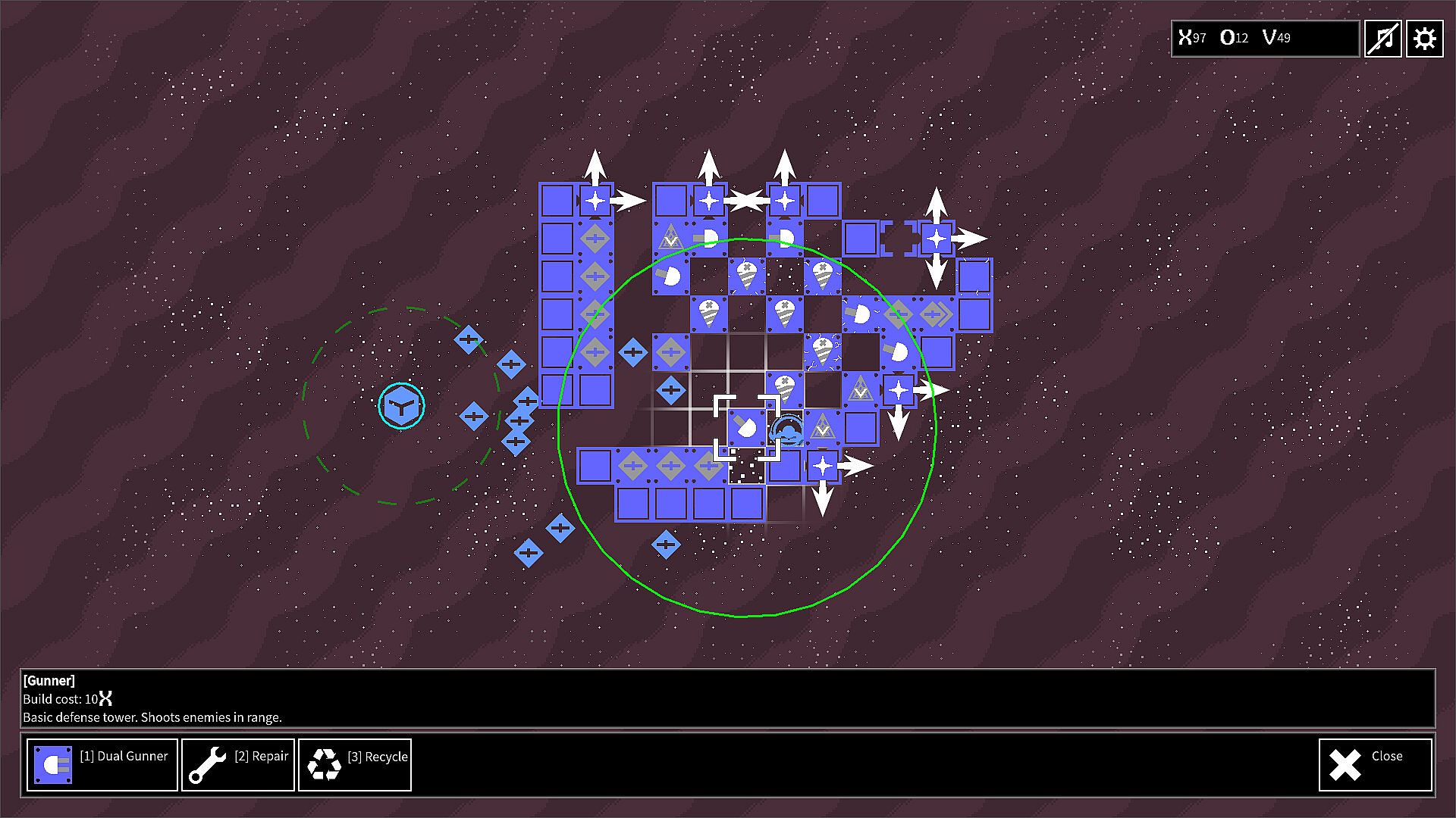 Swarm Fortress combines horde-survival and tower defense. You control a commander who must survive waves of enemies. Besides shooting the enemies yourself, your buildings will also shoot, block or generate resources for you.