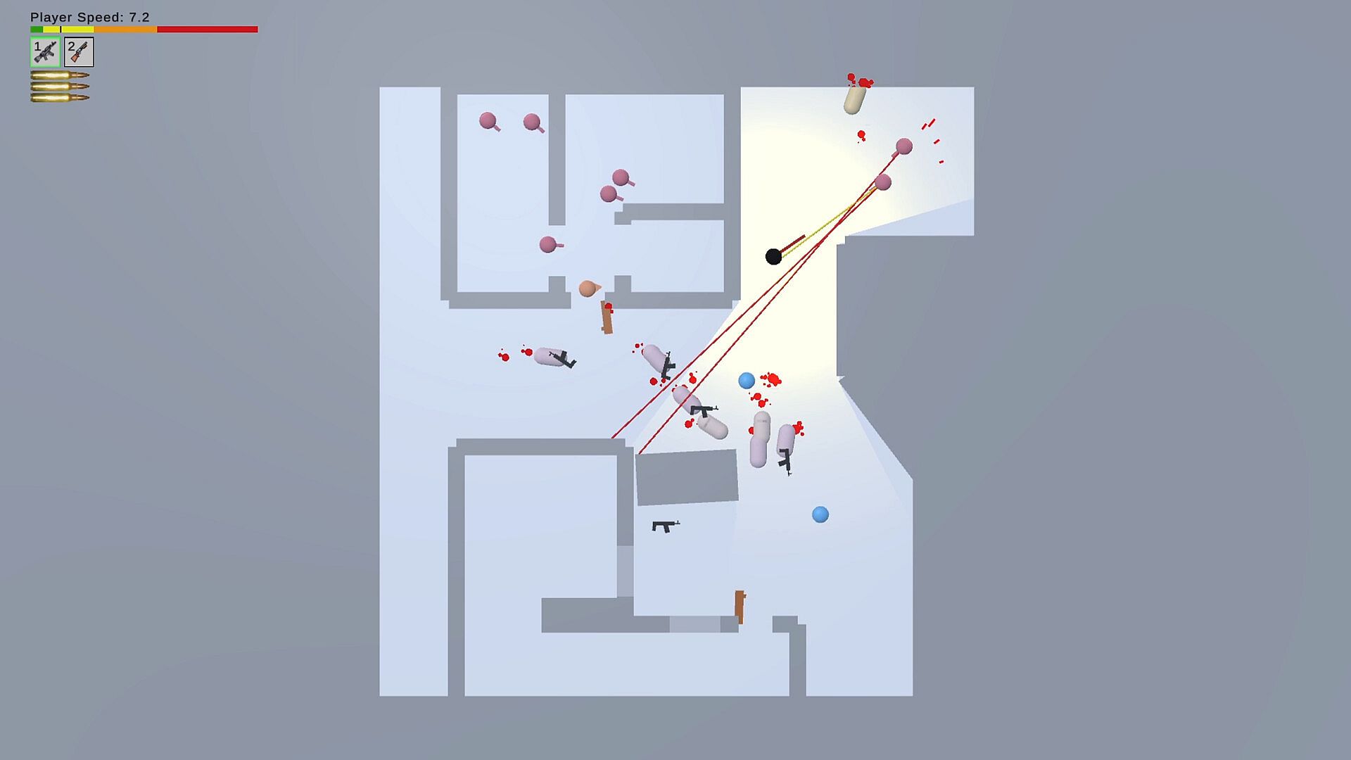 This is a hyper speed top down shooter that aims to remove all speed limits. Mouse control gives you as much speed and precision as you're capable of. Enemies with faster-than-human reactions will hunt you down, surround you, bombard you with grenades and rockets.
