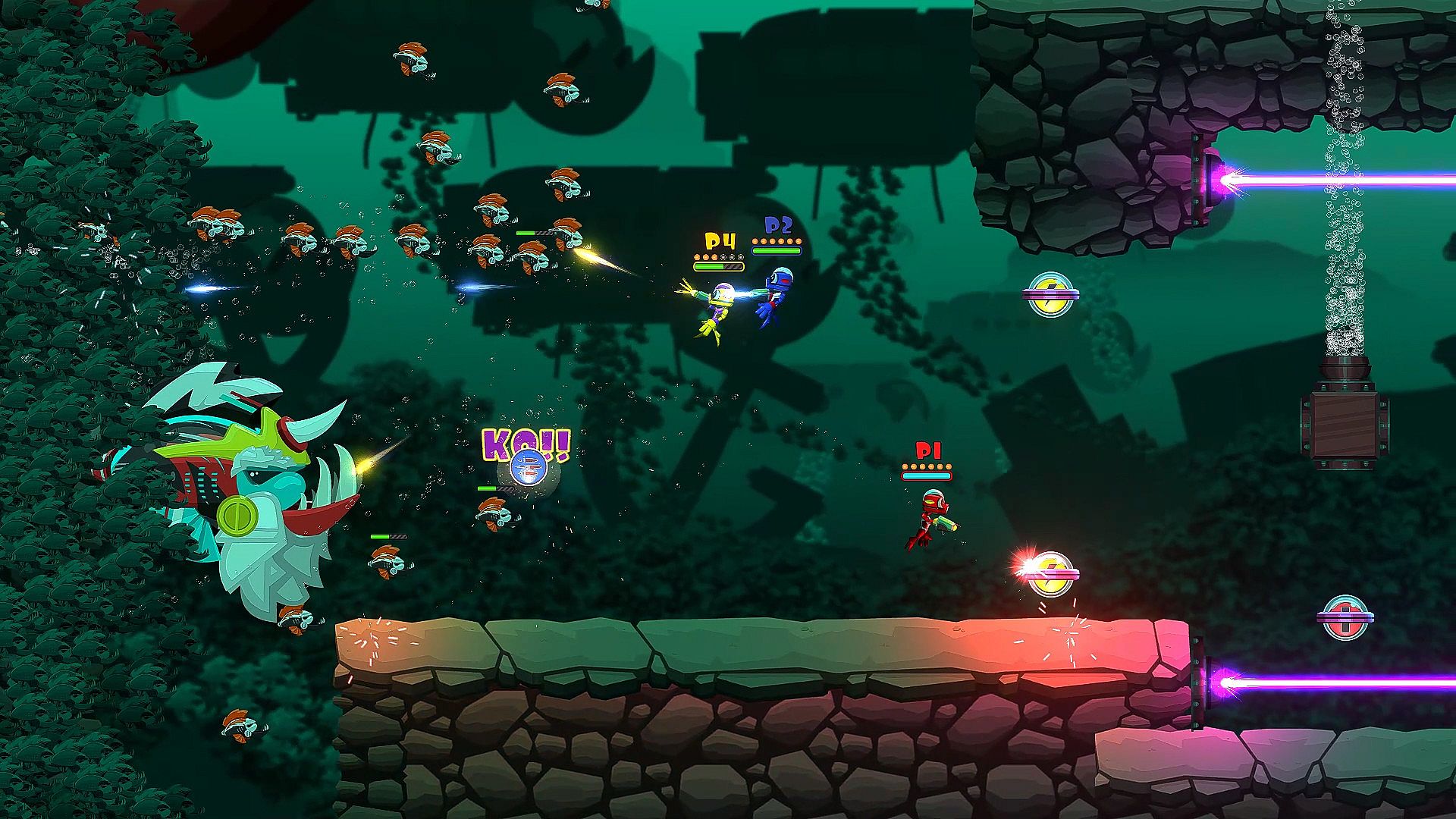 Battle endless waves of enemies with up to four players.