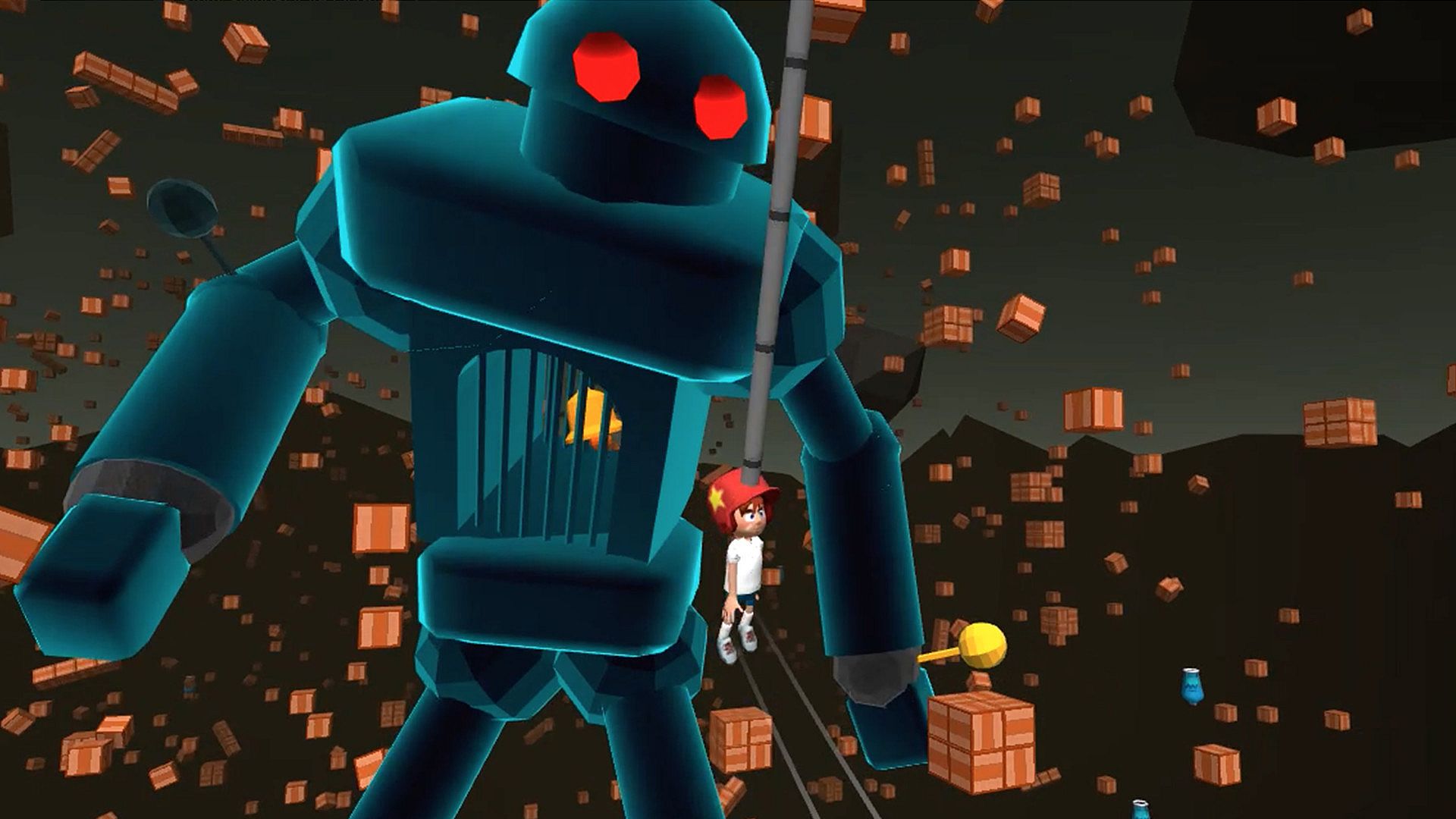 A disaster has mutated physics, you must save your home multiverse by ringing the mysterious bell. A magic helmet allows the player to swing through all of the affected dimensions, and set things right by ringing all the resonator bells. A colossus robot stand between you and the final bell. Explore a colorful cartoon world by swinging through enchanted deserts, bright forests, steep canyons, and many more bizarre and beautiful worlds!